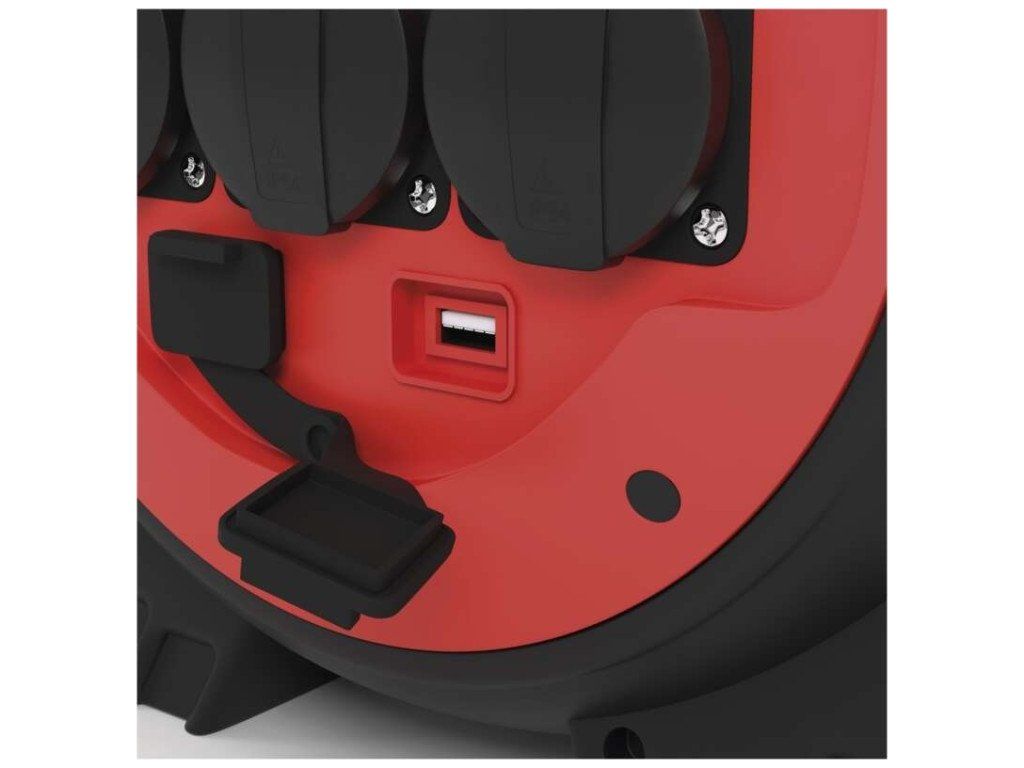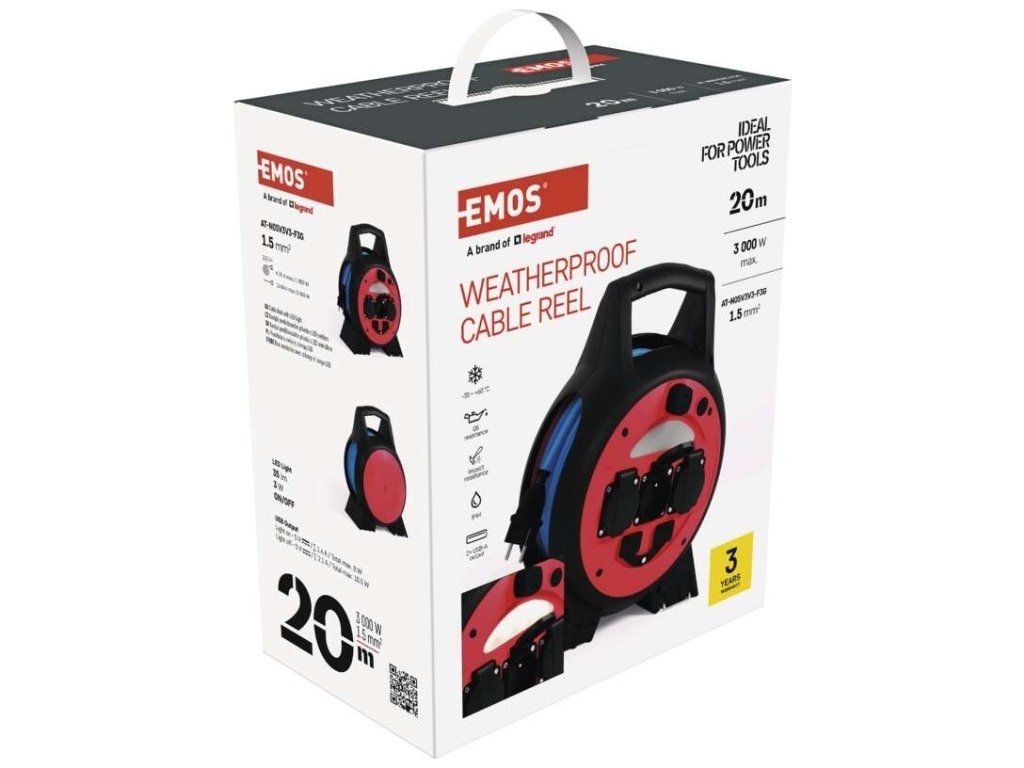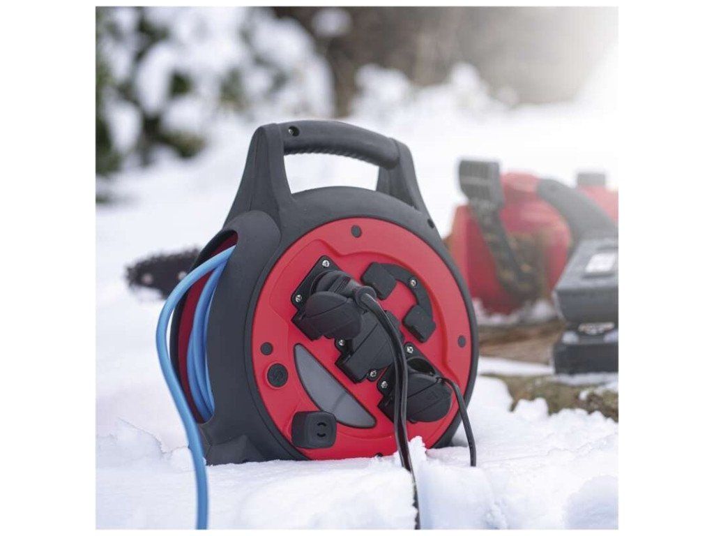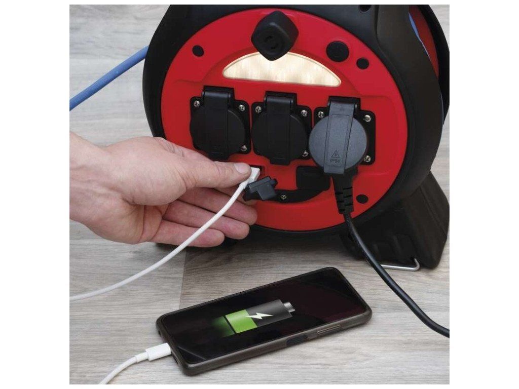 Mrazuvzdorný kabel s plastovou izolací - pro střední namáhání, v prostředí obyčejném, studeném i vlhkém (odolný proti ztíženým klimatickým podmínkám a teplotám až do -35˚C). Je odolný vůči oleji a UV záření. Krytí IP44 umožňuje použití ve venkovním prostředí.Součástí těla navijáků je i LED reflektor 3 W (35 lm), který poslouží pro osvětlení místa navijáku.2× USB typ A ∑2,1 A max.