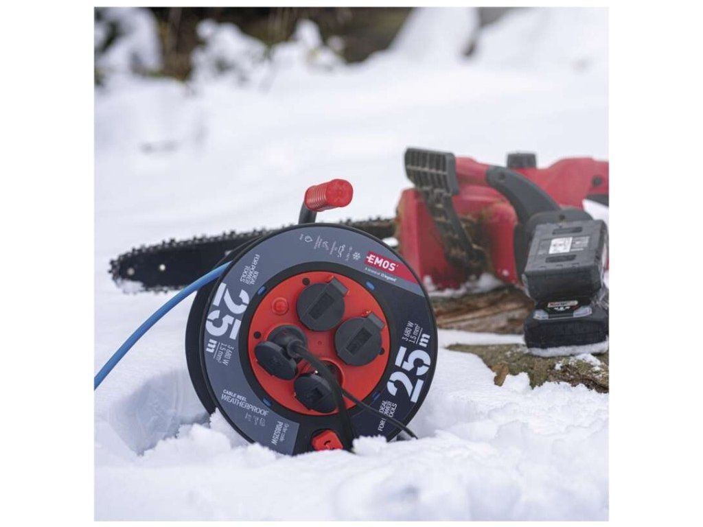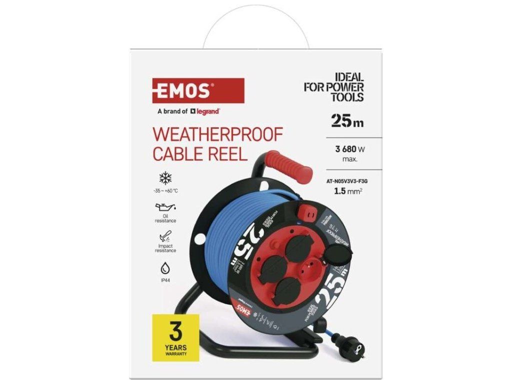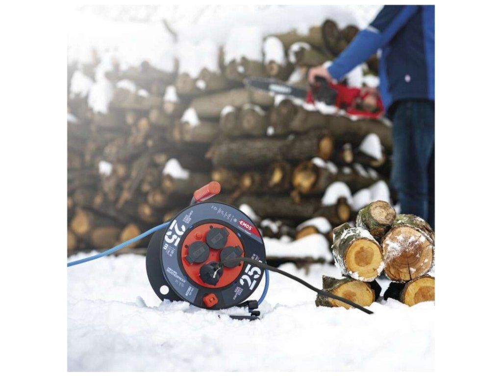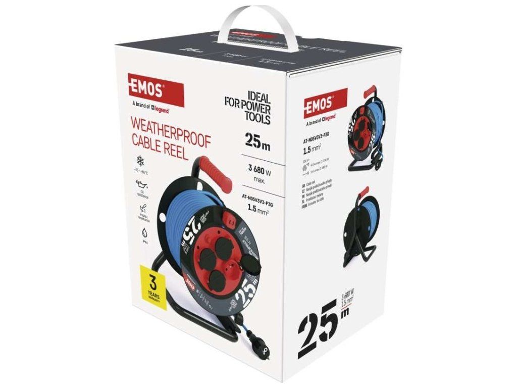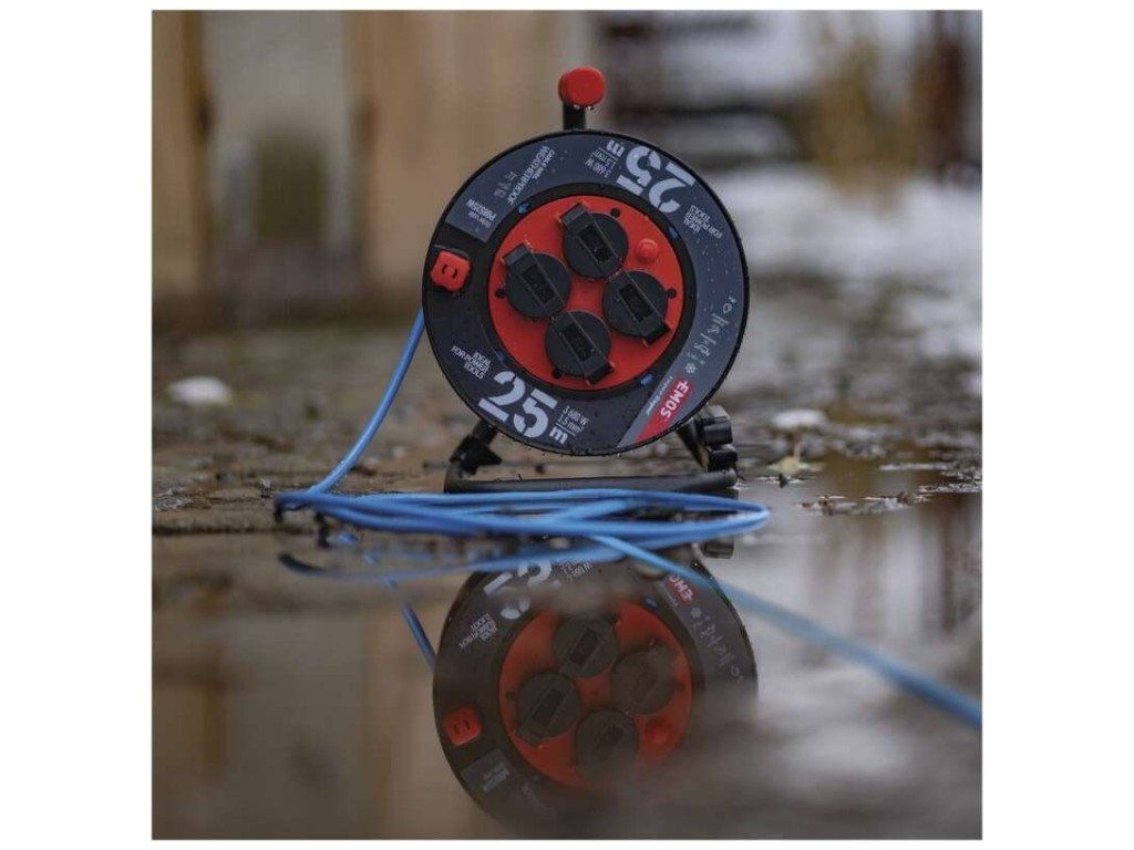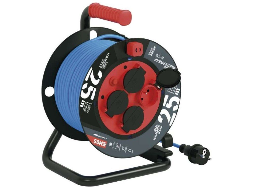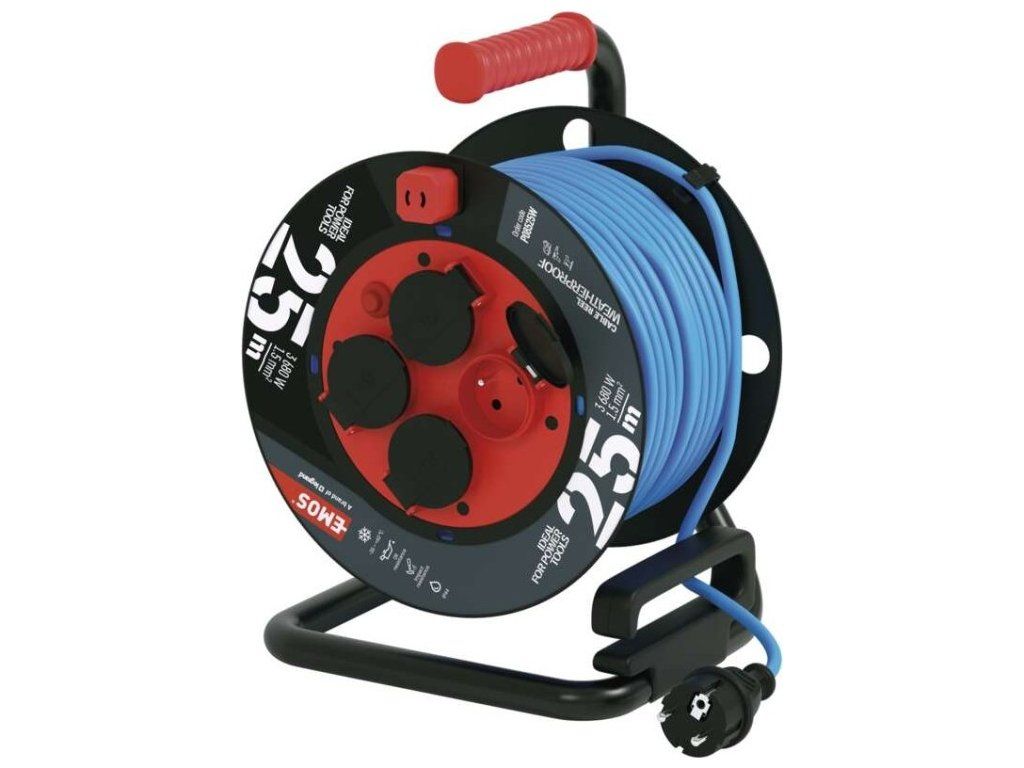 Počasí odolný prodluž. kabel na bubnu 25 m / 4 zásuvky / modrý / PVC / 230 V / 1,5 mm2