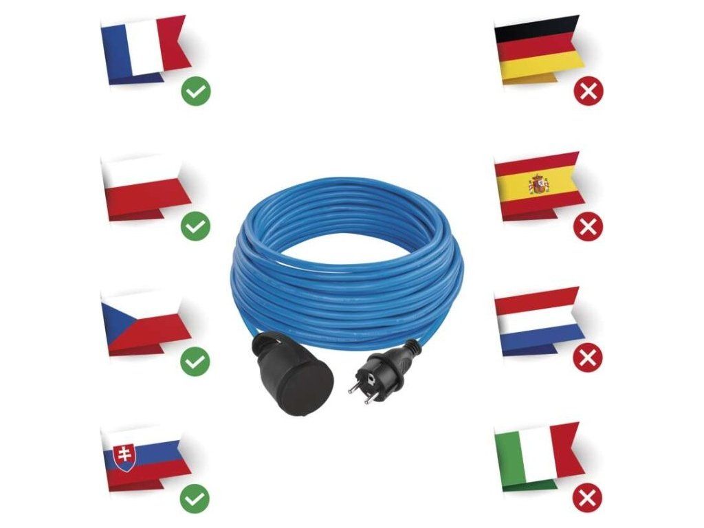 Počasí odolný prodlužovací kabel 20 m / 1 zásuvka / modrý / PVC / 230 V / 1,5 mm2