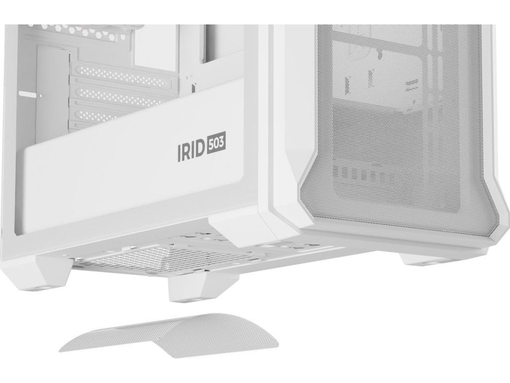 Irid 503 ARGB LITE má perforovanou přední stranu a boční panel je vyroben z čirého tvrzeného skla. Toto řešení umožní na první pohled vidět pracovní komponenty. Varianta LITE je také vybavena jedním ventilátorem OXAL ARGB 120, který zajišťuje podporu dostatečné cirkulace vzduchu uvnitř skříně.