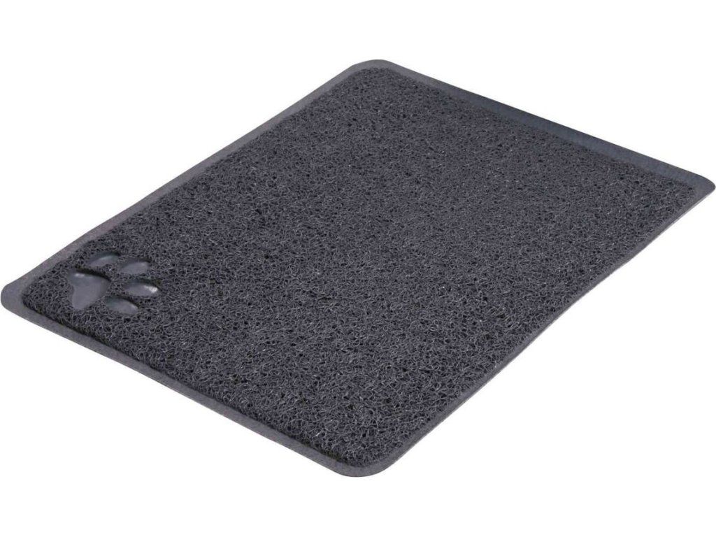 Praktická předložka před kočičí WC z PVC, protiskluzová. Očistí tlapky kočky od podestýlky, okolí toalety tak zůstává čisté. Je doporučeno ji používat rovněž u citlivých koček. Předložka má rozměry 45 x 37 cm a sedí tak ke všem standardním velikostem kočičích toalet.Podložku, na které ulpí stelivo či jiné nečistoty, jednoduše vyklepete.Barva šedá - antrazit, motiv tlapky.