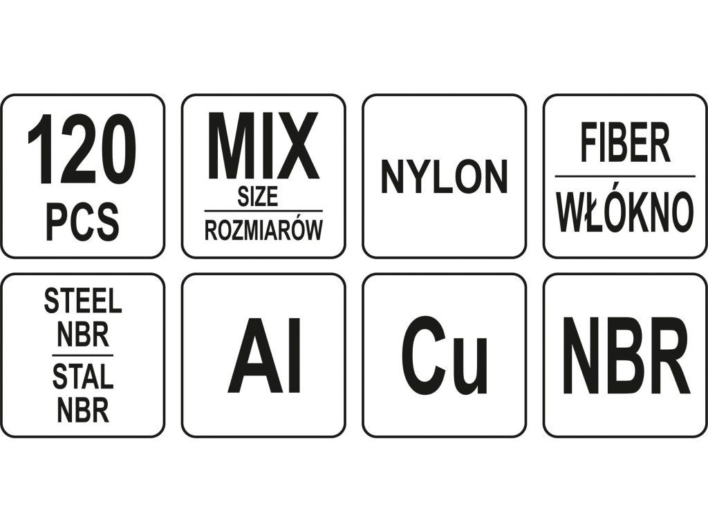 Podložky (Alu, Cu, Nylon, NBR, FIBER) sada 120ks