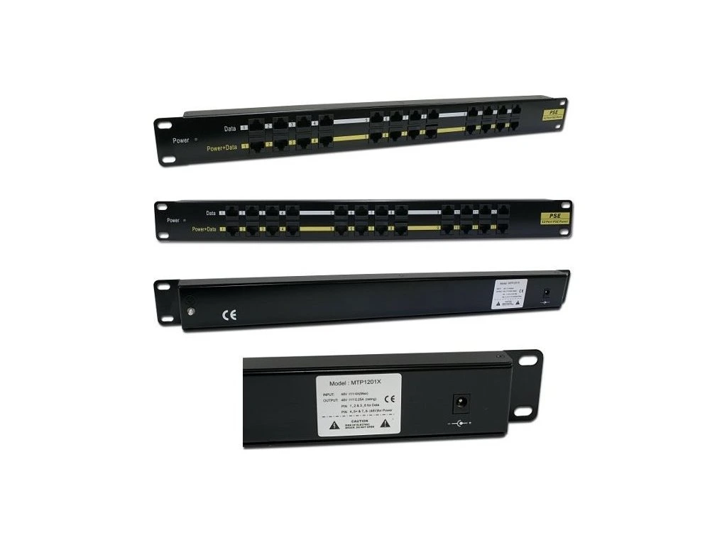 POE Patch panel/ UTP cat.5e 12p/ 1U/ Black (provedení 19" rack)