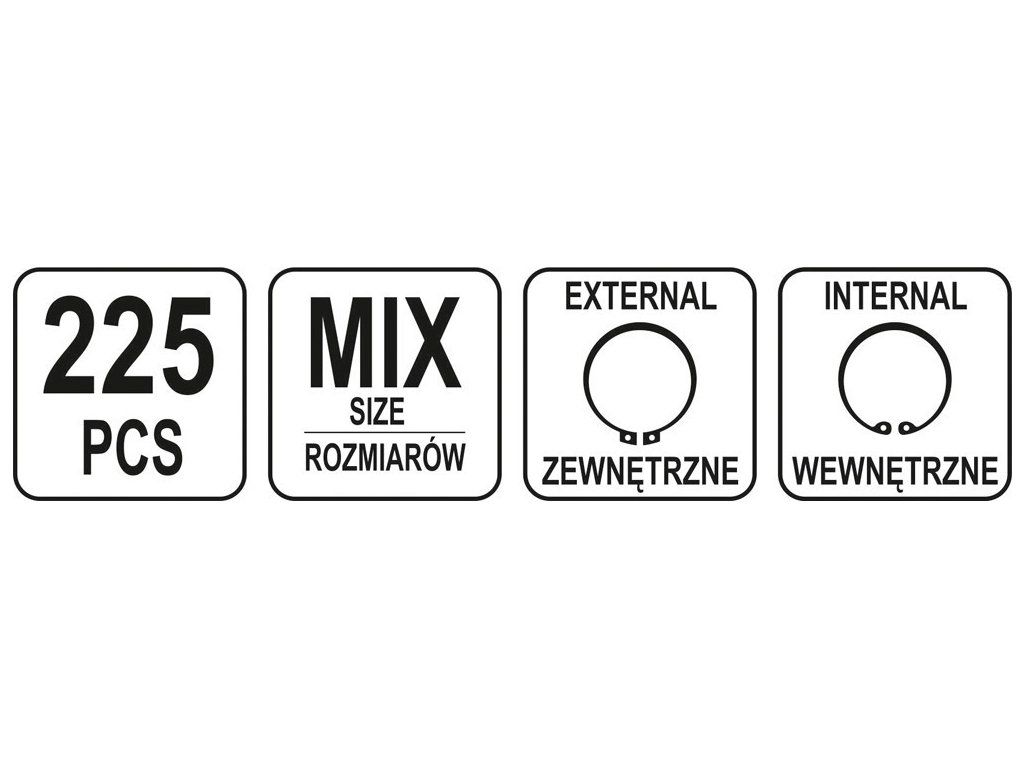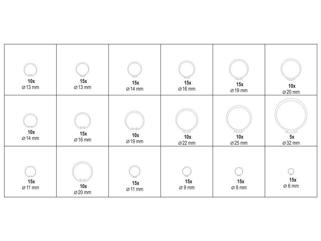 Pojistné kroužky (Segerovky) sada 225ks