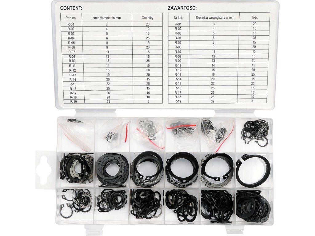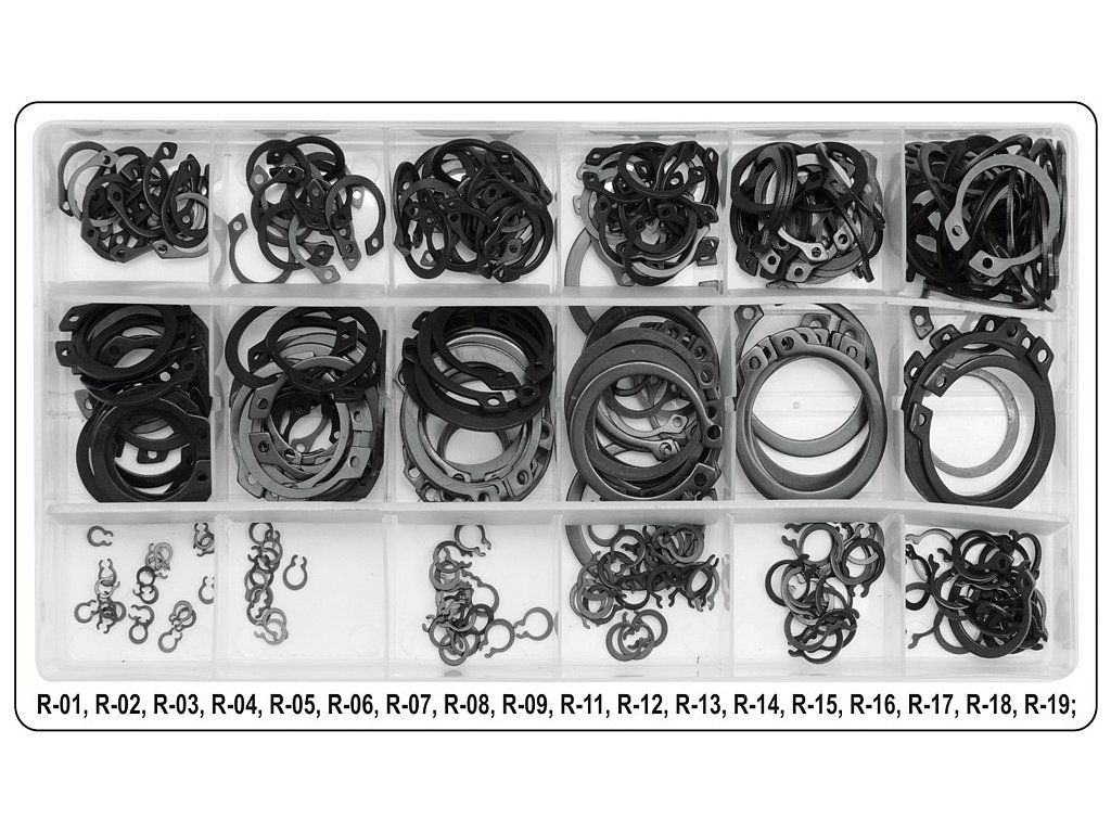 Pojistné kroužky sada 300ks, R1-R19, pr. 3 -32mm