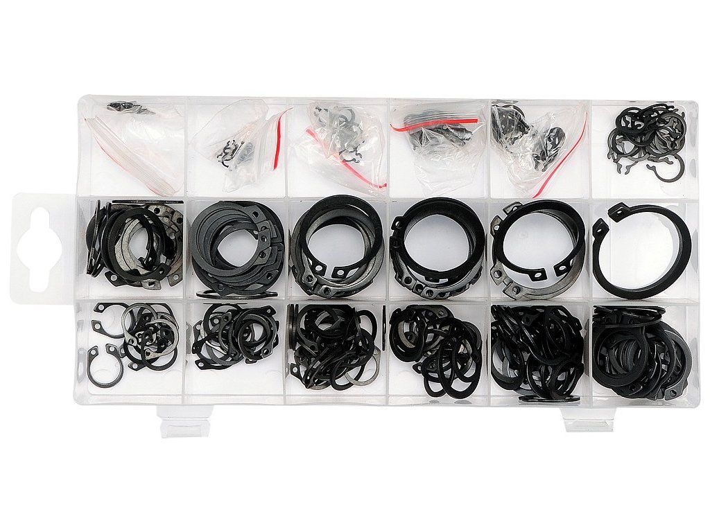 Sada 300 ks pojistných kroužků, nepostradatelných v garáži, v zemědělství a průmyslu.