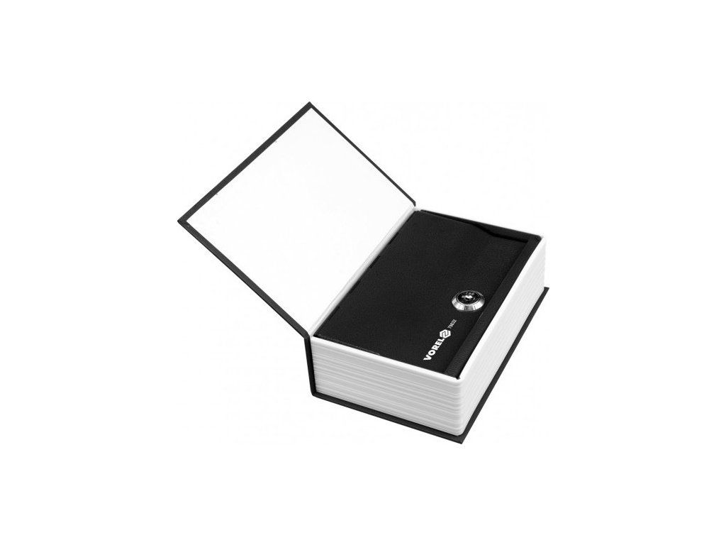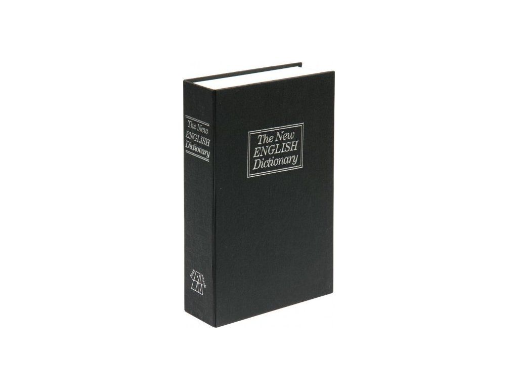 Přenosná peněžní kazeta ve tvaru knihy, rozměry 180 x 115 x 55 mm. Kryt je vyroben z lepenky a vnitřní kazeta je vyrobena z ocelového plechu o tloušťce 0,7 mm, natřena černě. Uzamykatelná kazeta. Sada obsahuje 2 klíče.
