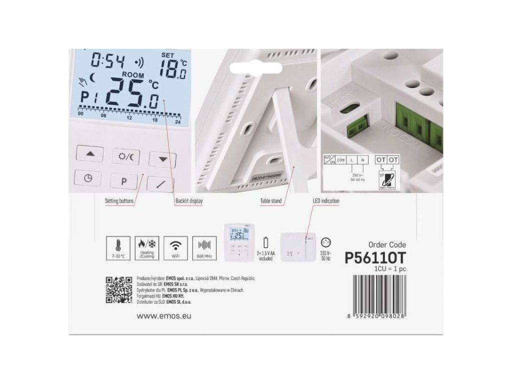 Podpora OT (opentherm) komunikačního protokolu a standartního spínacího relé.Funkce kalibrace teploty podle místnosti.Velký přehledný displej.Zvýšený dosah mezi vysílačem a přijímačem oproti předchůci P5611N.Snížená minimální hodnota hystereze na 0,1°C.