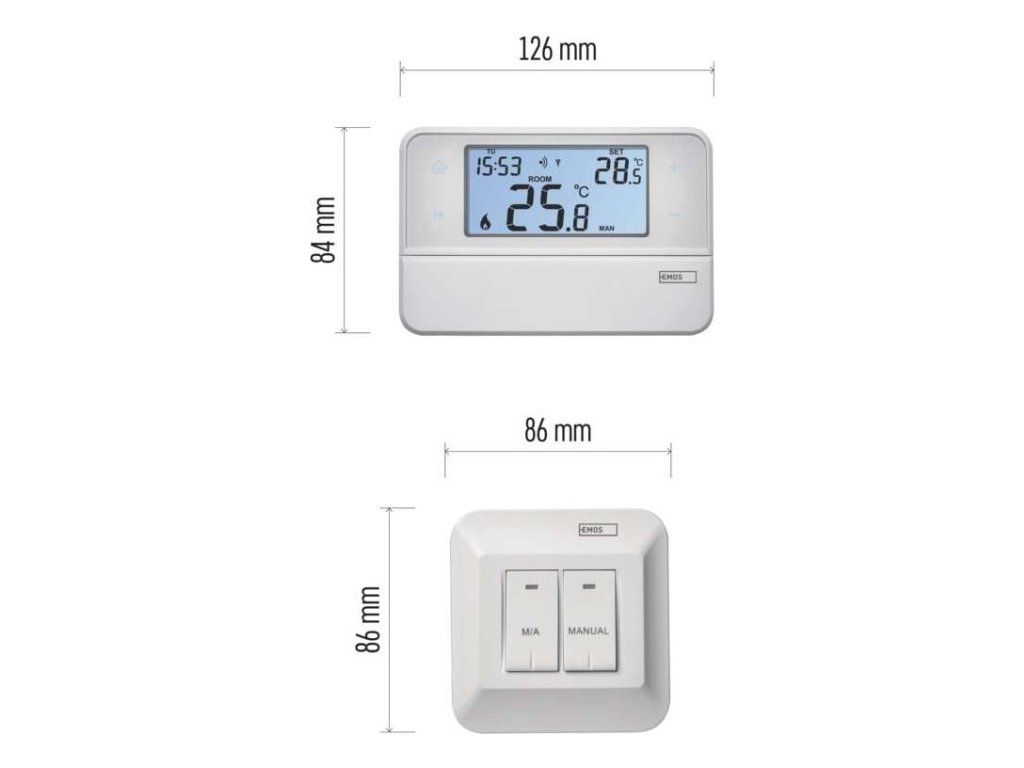 | Typ ovládání: | programovatelný elektronický pokojový termostat |