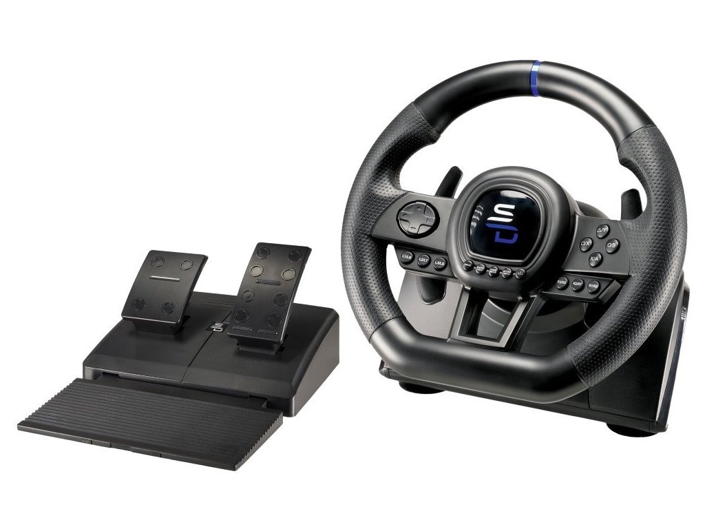 SUPERDRIVE SV650Volant s pedály pro PS4, PS3, Xbox One, Xbox X, Xbox S, Nintendo Switch a PC. Volant SV650 nabízí 270° úhel otáčení, který se přizpůsobí vašim jízdním návykům a poskytuje tak věrný závodní zážitek. Je vybaven řadicí pákou, duálním vibračním motorem a také protiskluzovým systémem pedálů. Je plně programovatelný a nabízí 3 úrovně citlivosti. Volant je vybaven přísavkami a lze jej snadno připevnit na rovný povrch. Zajisté potěší také konektor pro připojení sluchátek.