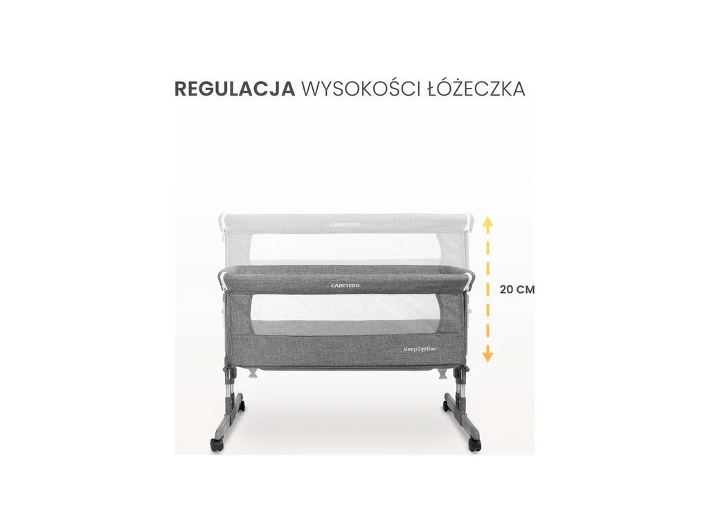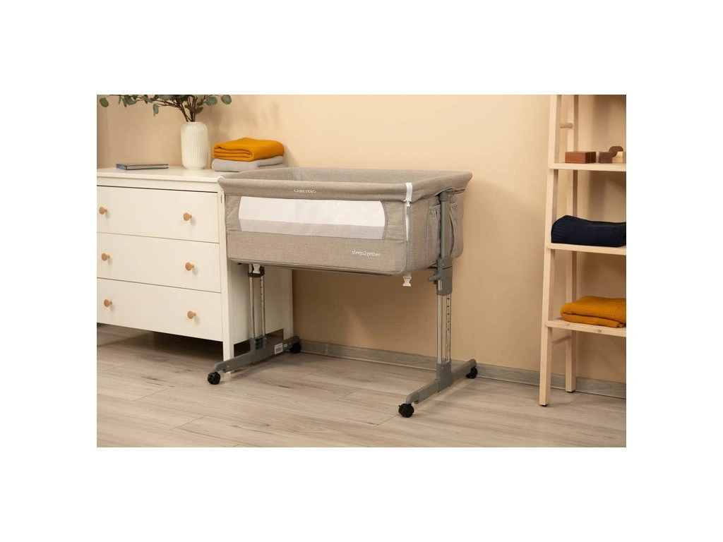 Sleep2gether je dětská postýlka 2 v 1 , která byla vytvořena s ohledem na intimitu. Lze ji použít jako samostatnou postýlku, ale své skutečné schopnosti ukazuje po demontáži přední stěny. Sleep2gether lze umístit vedle postele rodičů, takže krmení a péče mohou probíhat bez vstávání z postele. Díky 7stupňovému nastavení výšky, zabudovaným kolečkům s aretací a nastavitelným nohám je lze snadno přizpůsobit téměř každé posteli. Sada obsahuje pohodlnou matraci s vyztuženou základnou a popruhy, které umožňují připevnit Sleep2gether k posteli rodičů. Jedinečný vzhled spočívá v kombinaci nadčasové šedé s elegantní a jemnou, prošívanou látkou uvnitř postýlky