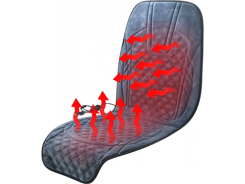 Potah je opatřen vyhřívanou sedákovou částí, ale i vyhříváním opěradla. Zajistí tak velmi příjemné posezení. Potah je vybaven zabudovaným termostatem a ovladačem s digitálním displejem, pomocí kterého lze volit vyhřívání potahu i časovač.