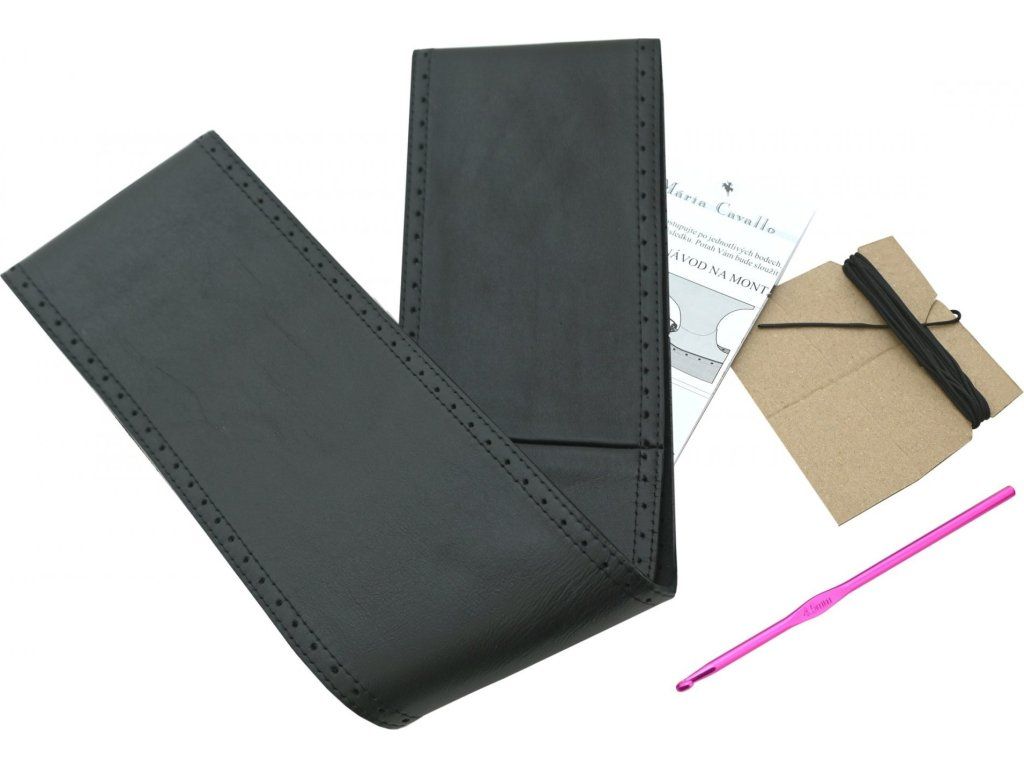 Sada obsahuje samotný kožený potah, pevnou černou šňůru a jehlu pro snadné a kvalitní upevnění k volantu. Ke každému balení je rovněž přiložen přehledný návod na montáž.