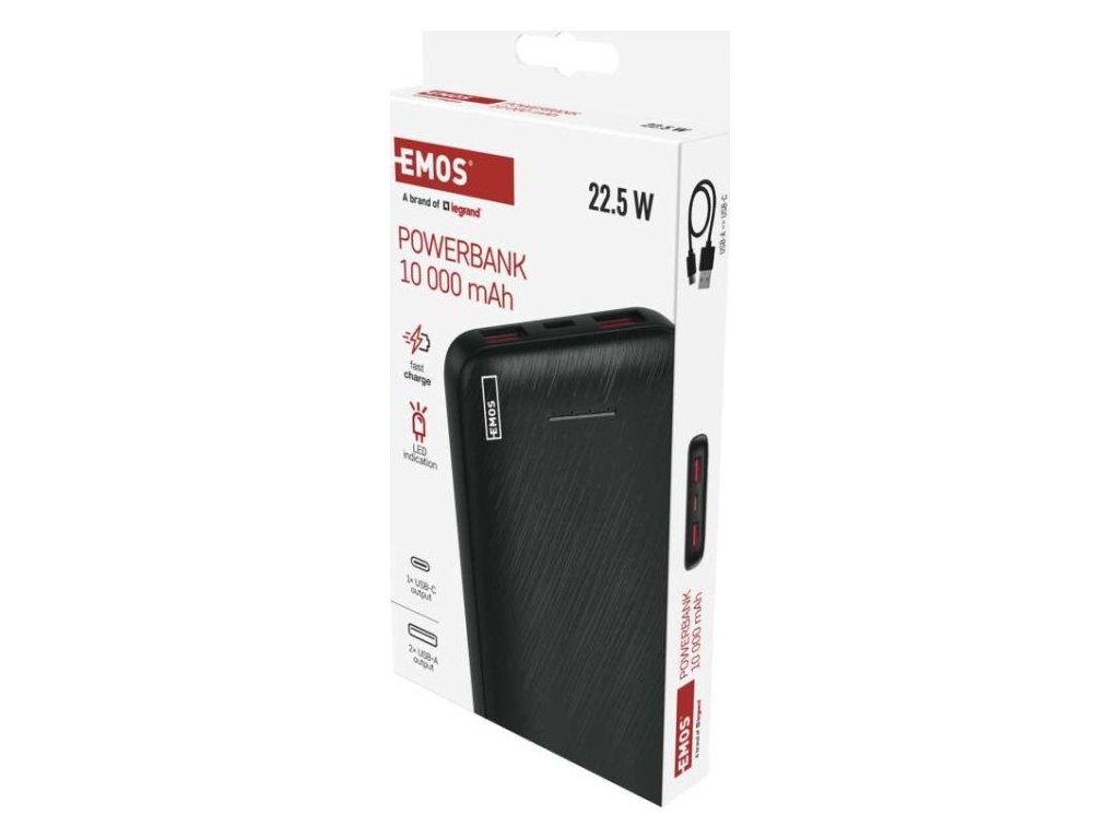 Powerbanka EMOS AlphaQ3, 10 000 mAh, 22,5 W, černá