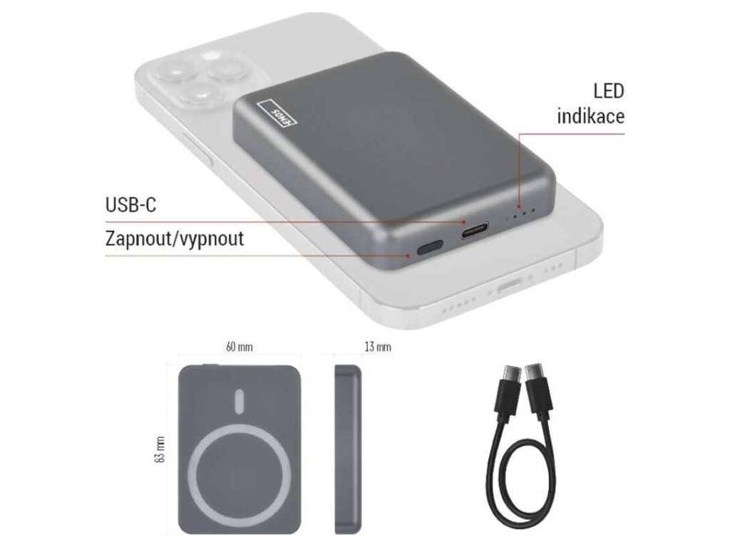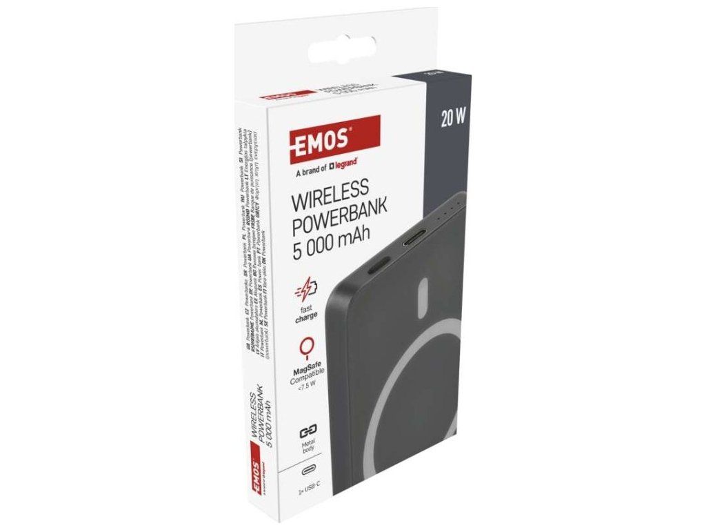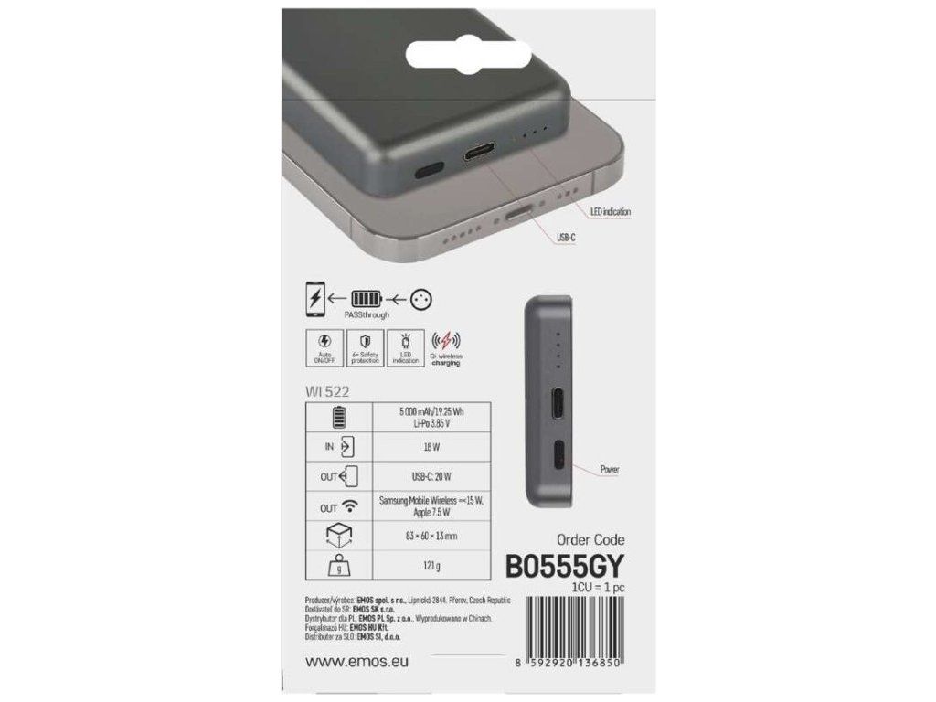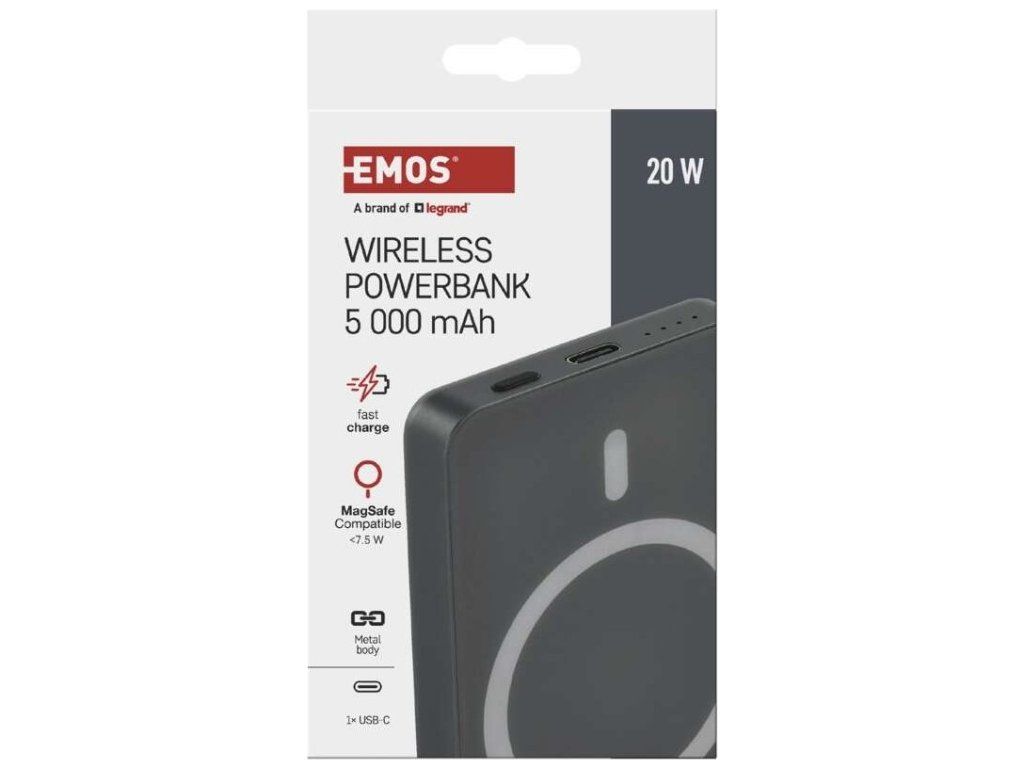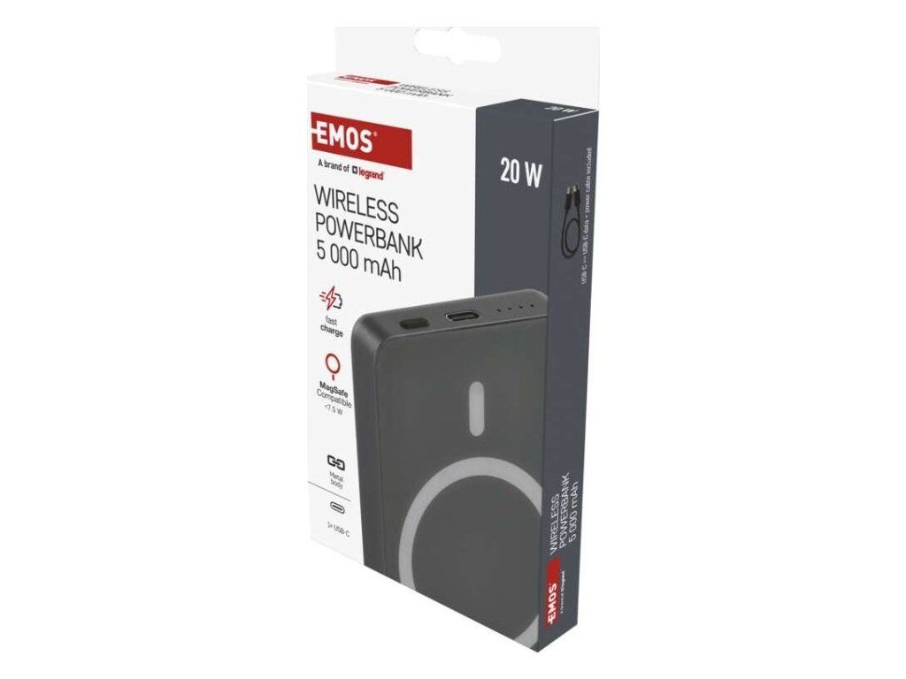 Powerbanka EMOS WI 522, 5 000 mAh, 20 W+Wireless, šedá