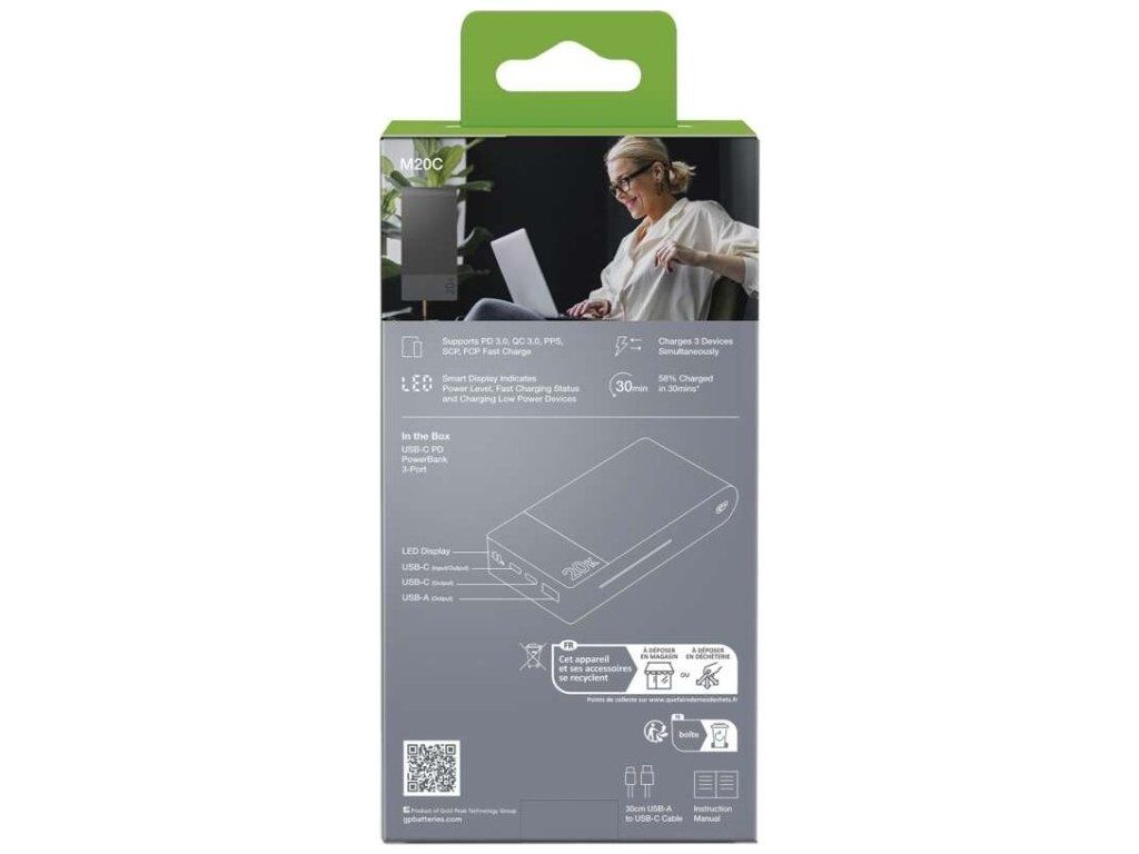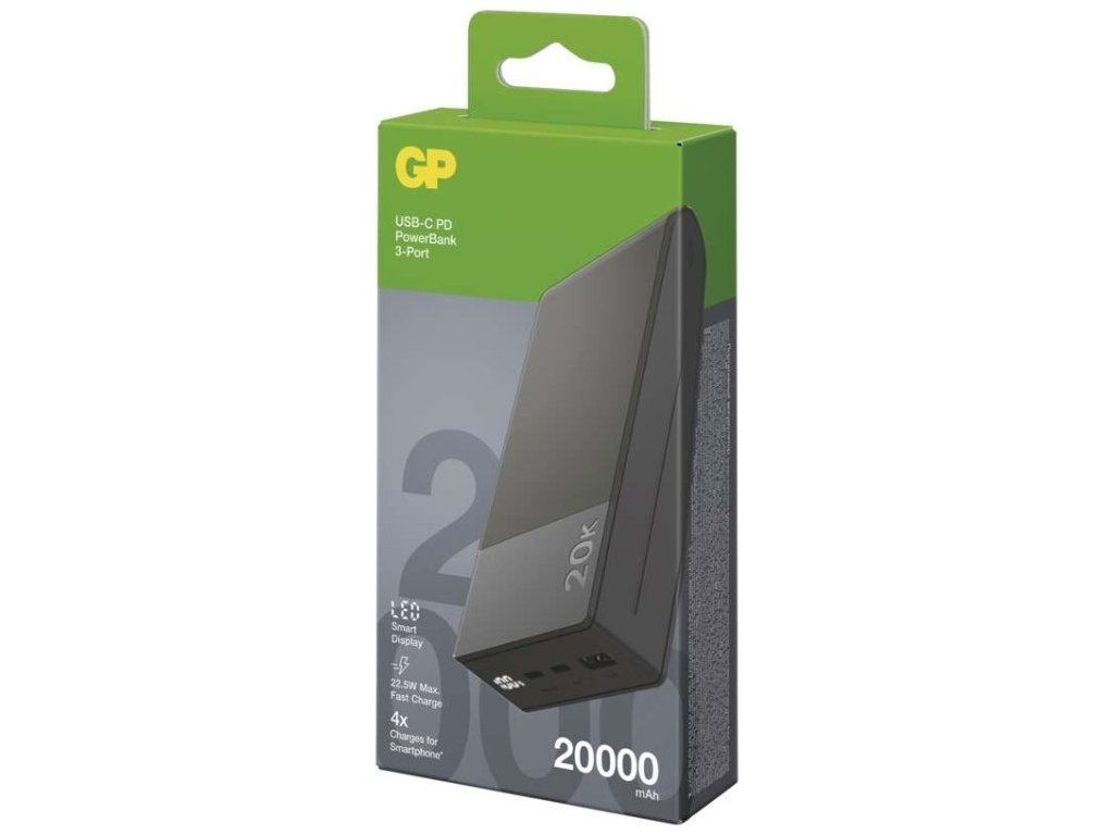 Powerbanka GP M2+ Series, 20 000 mAh, 22,5 W, šedá