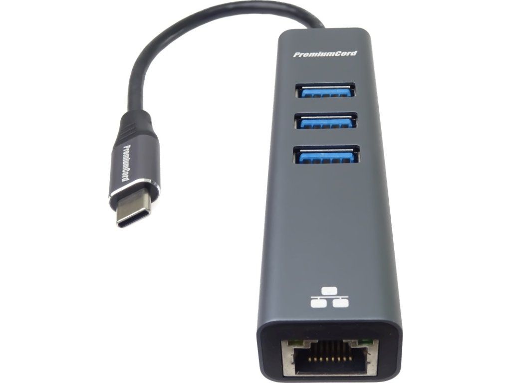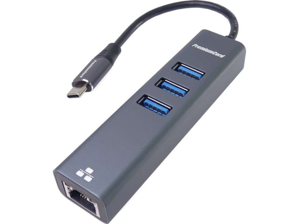 PremiumCord Adapter USB-C na Gigabit 10/100/1000Mbps + 3x USB3.0 konektor