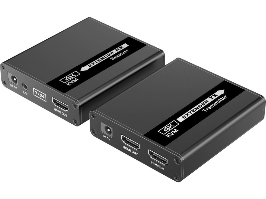 Tento výkonný HDMI extender se skládá z vysílače a přijímače, které se propojují běžným síťovým kabelem Cat.6/6A/7. Zařízení umožňuje nejen přenos kvalitního HDMI obrazu bez zpoždění a komprese, ale také připojení USB 1.1 periferií jako jsou klávesnice, myši nebo jiná USB zařízení.