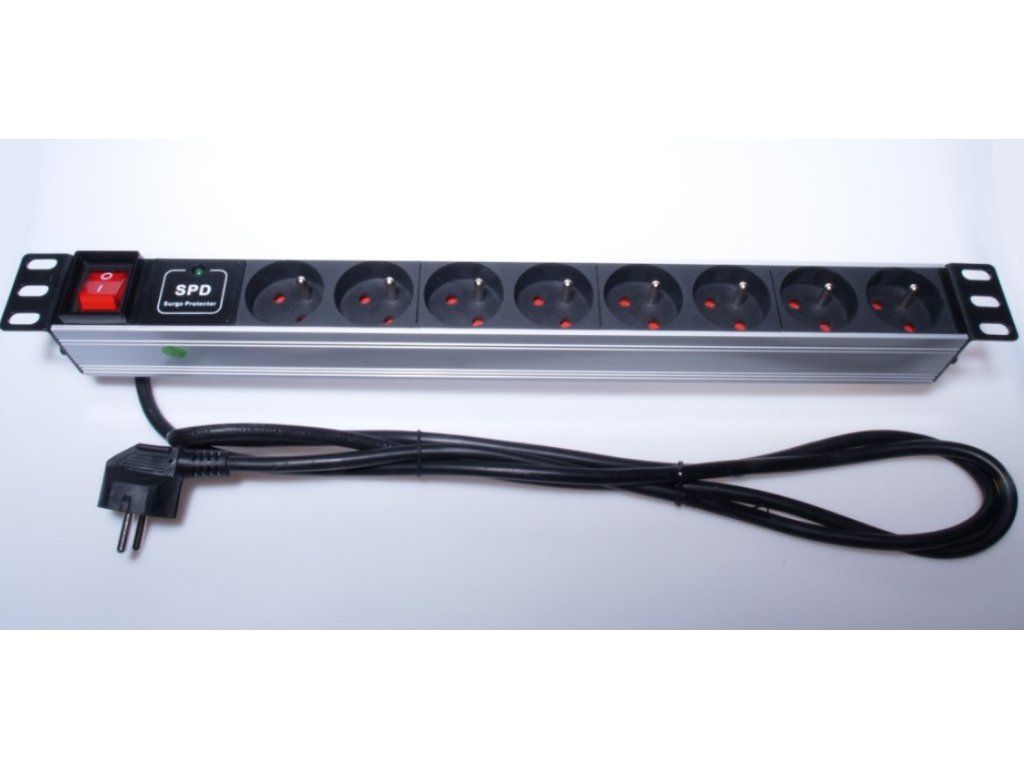 PremiumCord Panel napájecí 1U do 19" racku, 8x230V, přepěťová ochrana, 2m kabel, vypínač