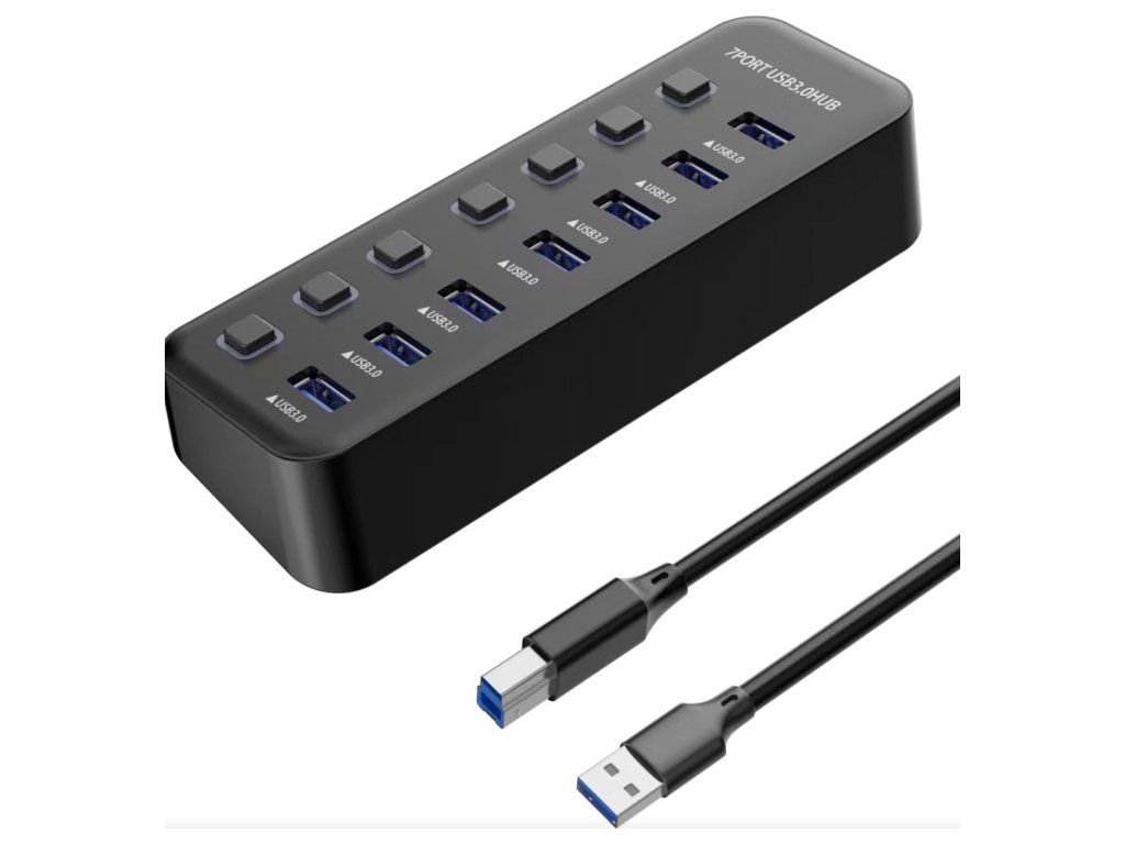 Hub umožní připojit do jednoho portu USB až 7 další zařízení USB. Zařízení je USB3.2 s rychlostí až 5Gbps. Pomocí vypínačů je možné jednotlivé USB periferie připojovat a odpojovat.