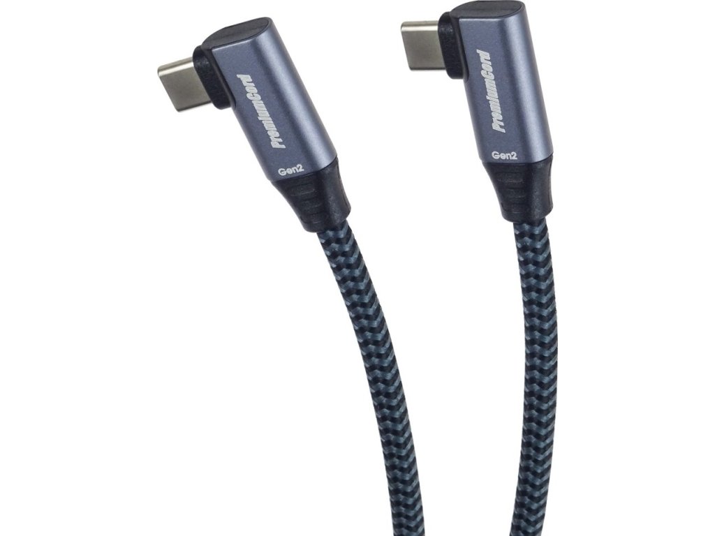 PremiumCord USB-C 2x zahnutý 90° kabel ( USB 3.2 GEN 2x2, 5A, 100W, 20Gbit/s ) hliníkové krytky konektorů, bavlněný oplet, 2m