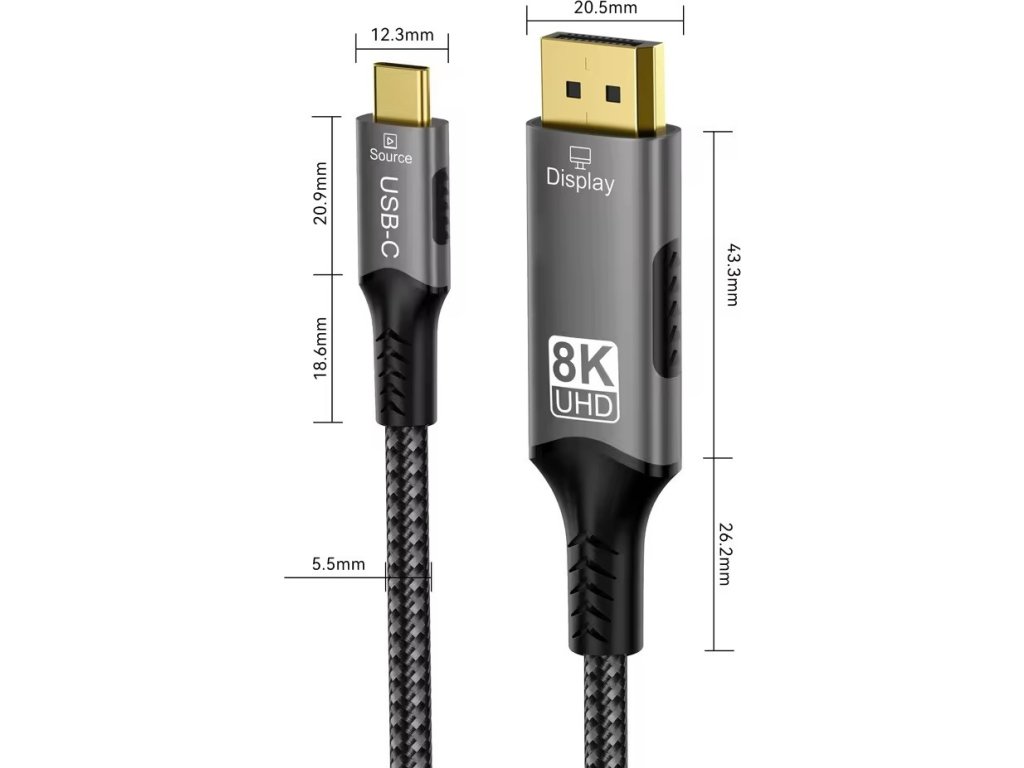 Kabel s nejnovější specifikací DP1.4 přichází, podporuje rozlišení až 8K@60 Hz s HDCP 2.2, umožňuje připojit a zobrazovat na nejnovějších monitorech nebo televizorech v rozlišení ultra HD 8K@60Hz