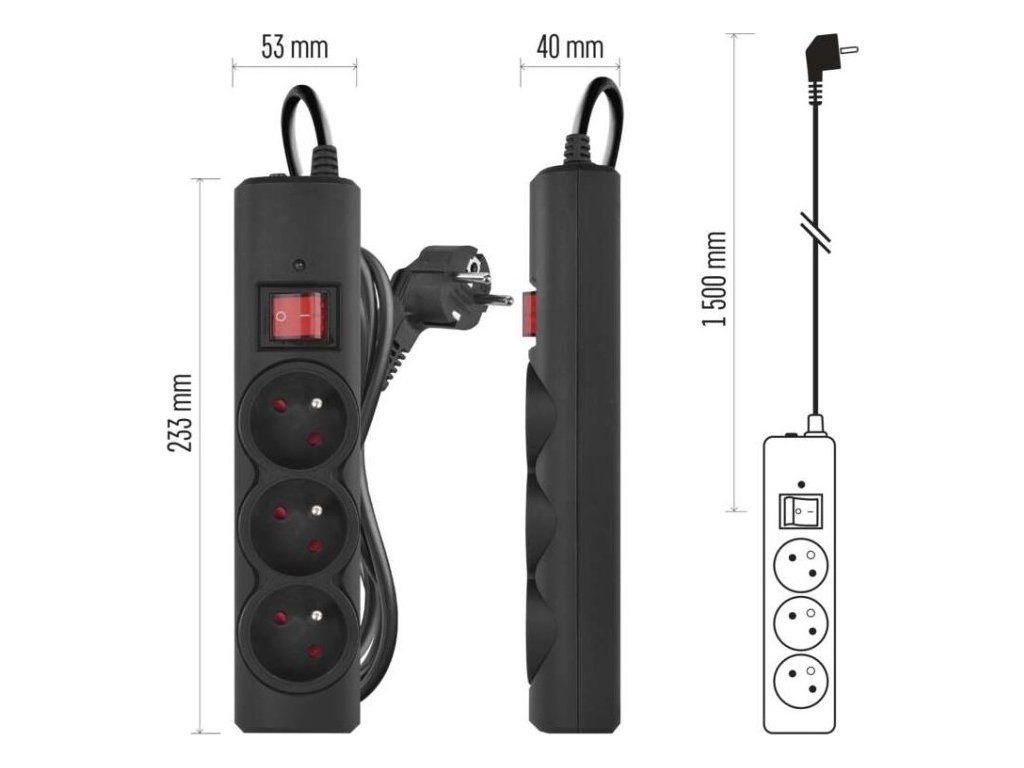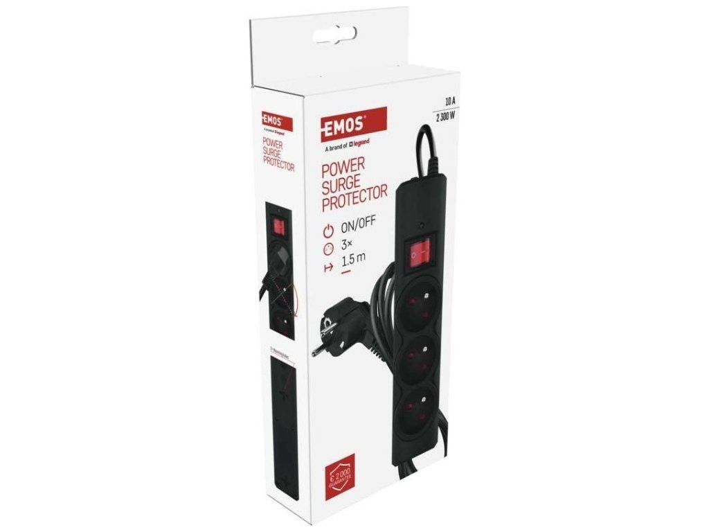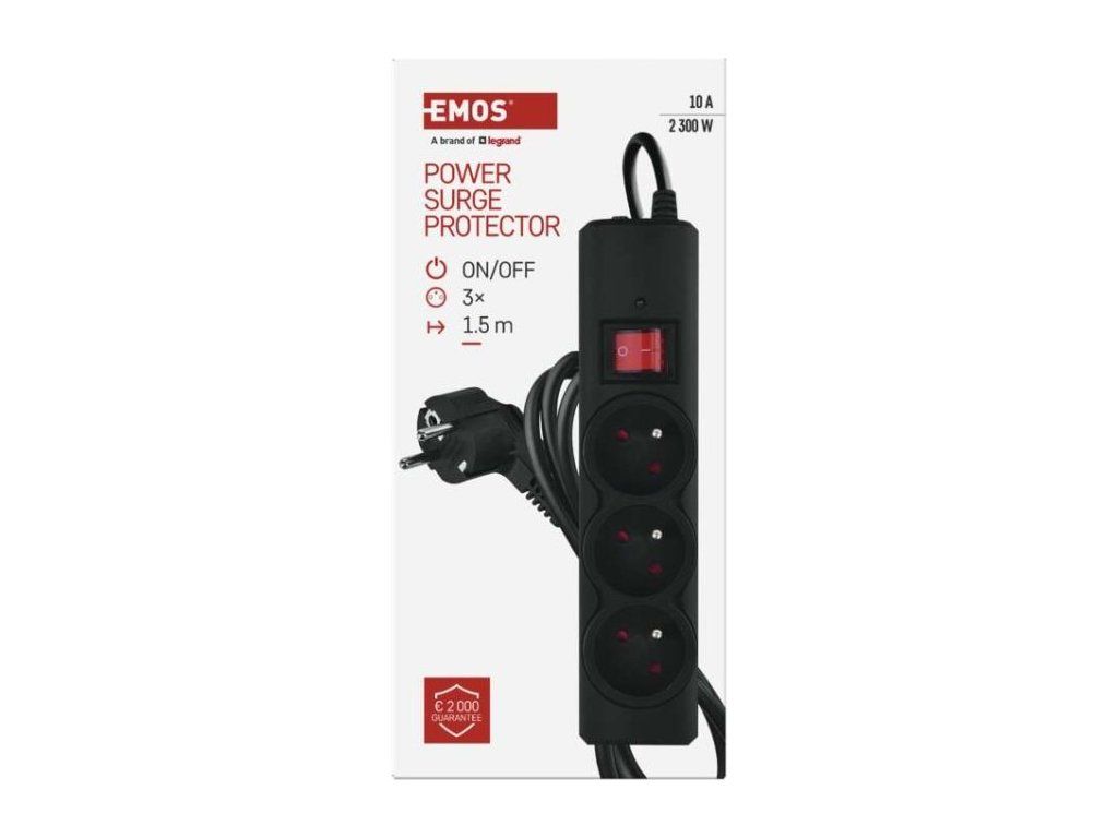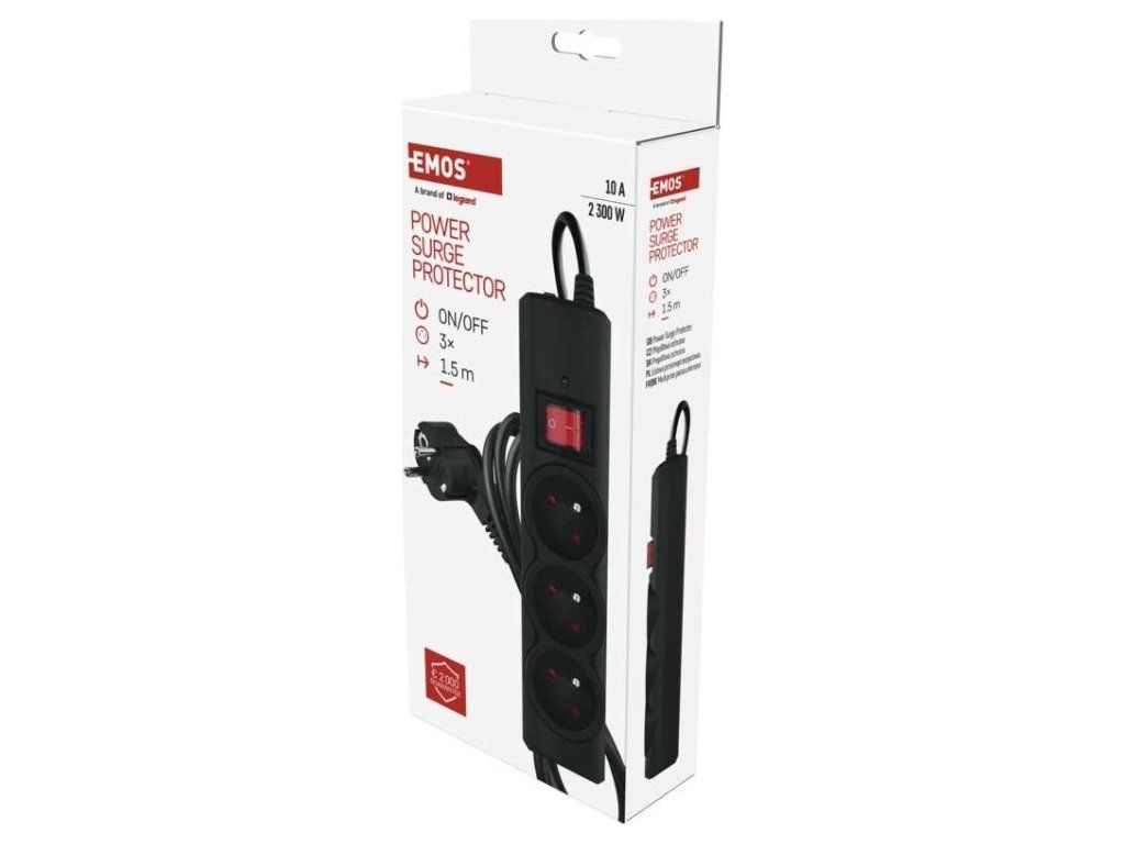 Přepěťová ochrana – 3 zásuvky, 1,5 m, černá