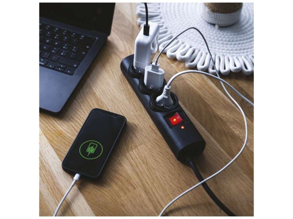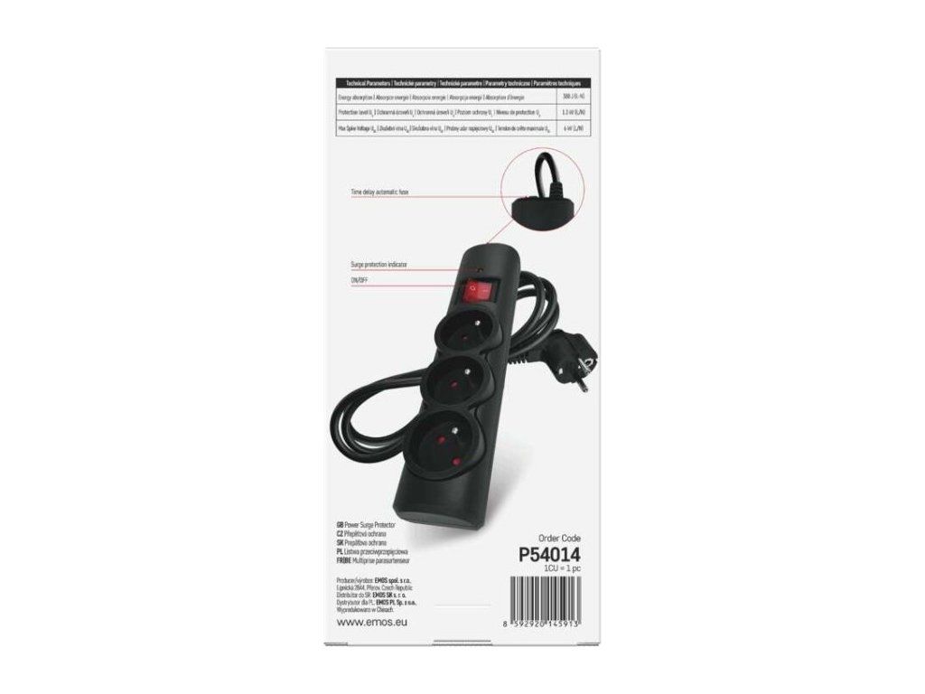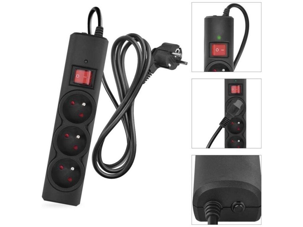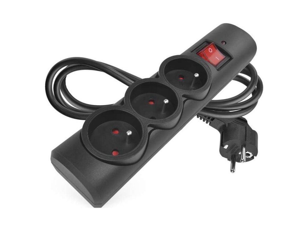 Přepěťová ochrana – 3 zásuvky, 1,5 m, černá