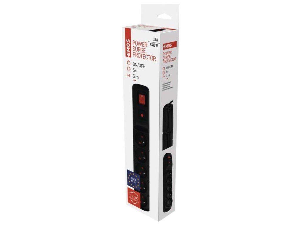 Přepěťová ochrana – 5 zásuvek, 3m, černá