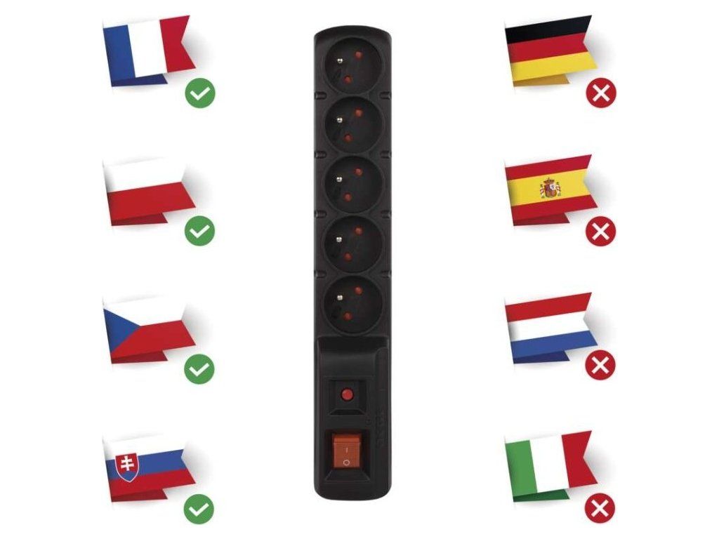 - přepěťová ochrana, 5 zásuvek 10A/250 V~