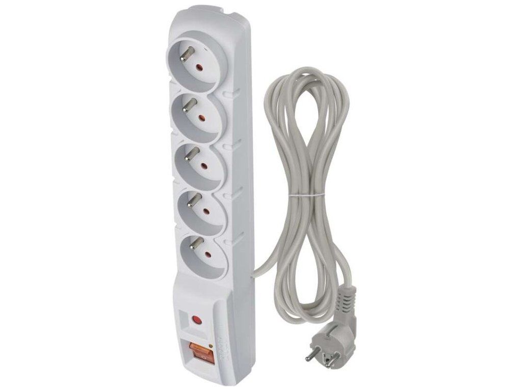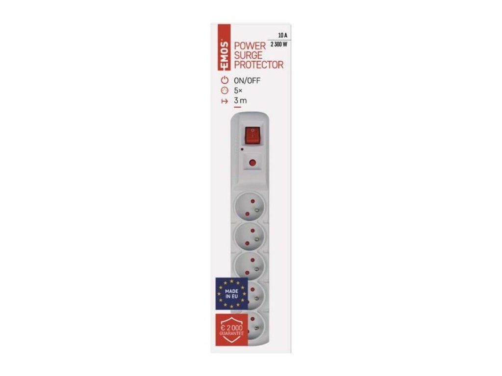 Přepěťová ochrana – 5 zásuvek, 3m, šedá