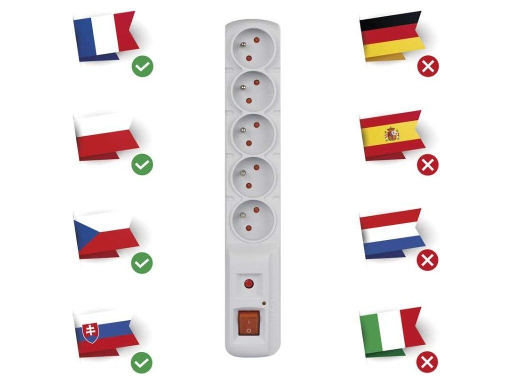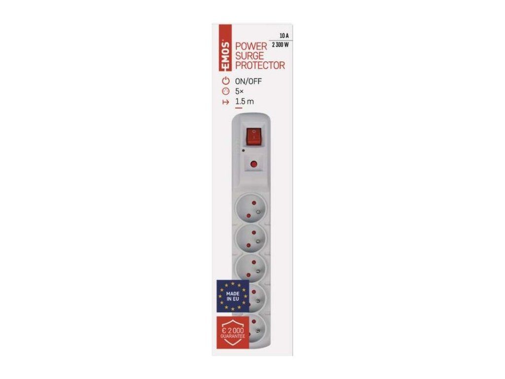Přepěťová ochrana – 5 zásuvek 1,5m, šedá