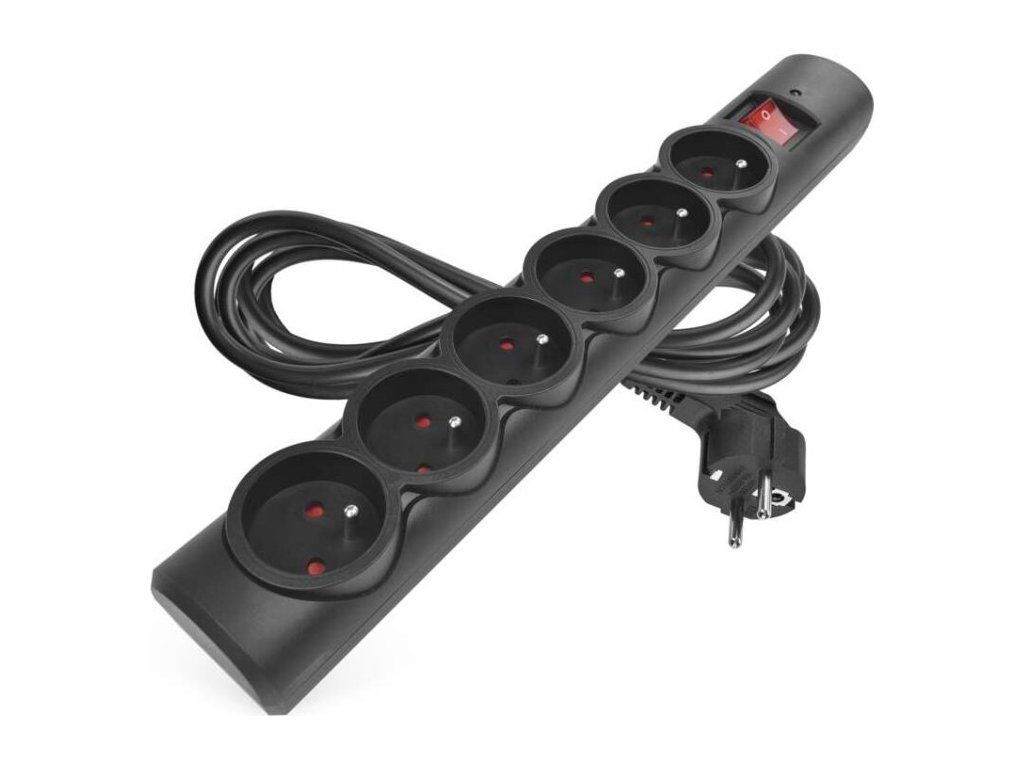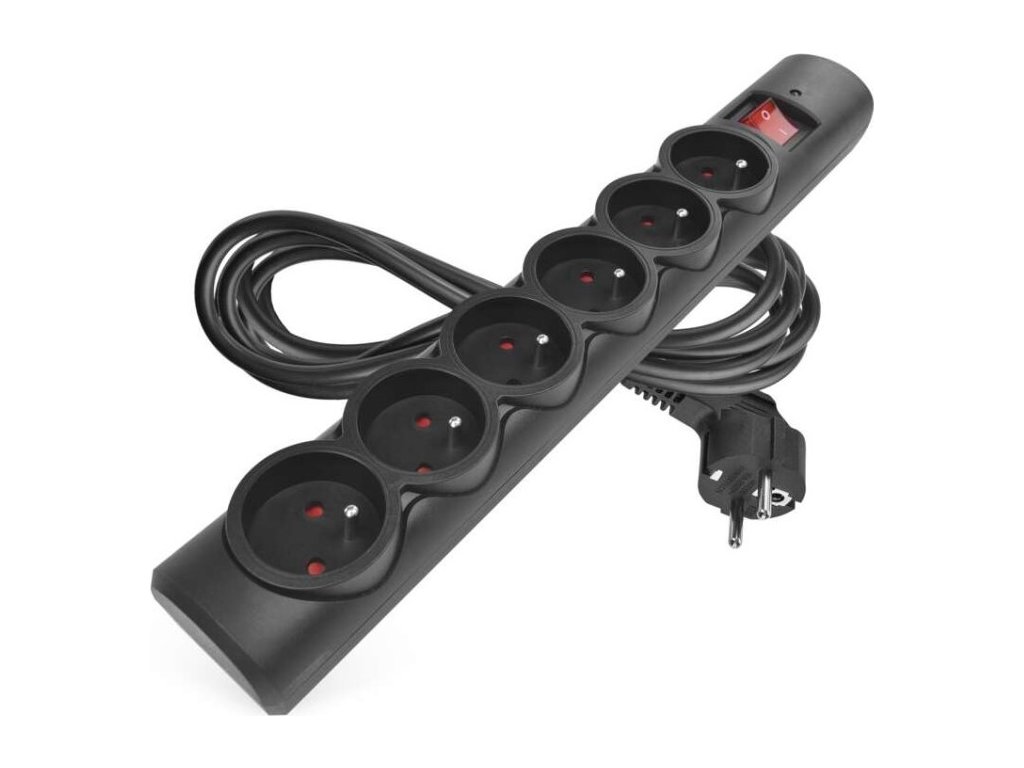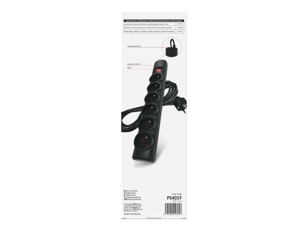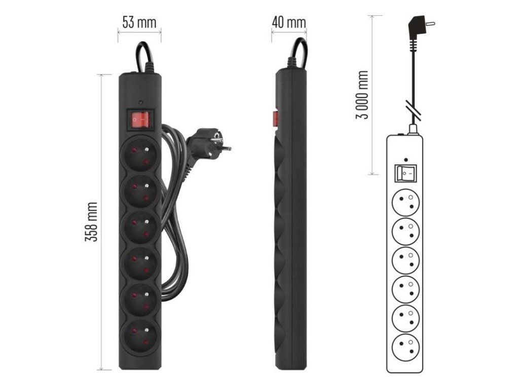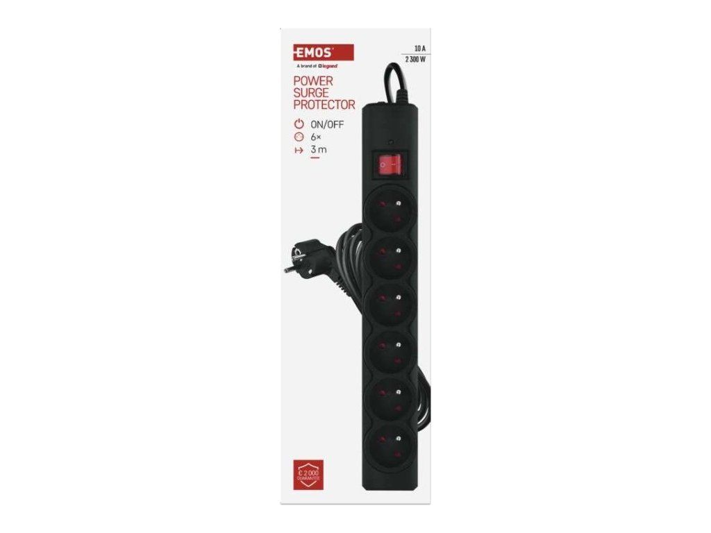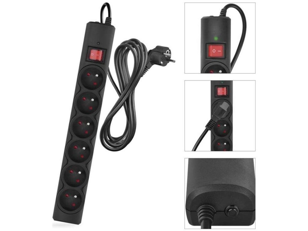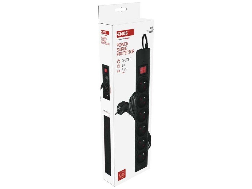 Přepěťová ochrana – 6 zásuvek, 3 m, černá