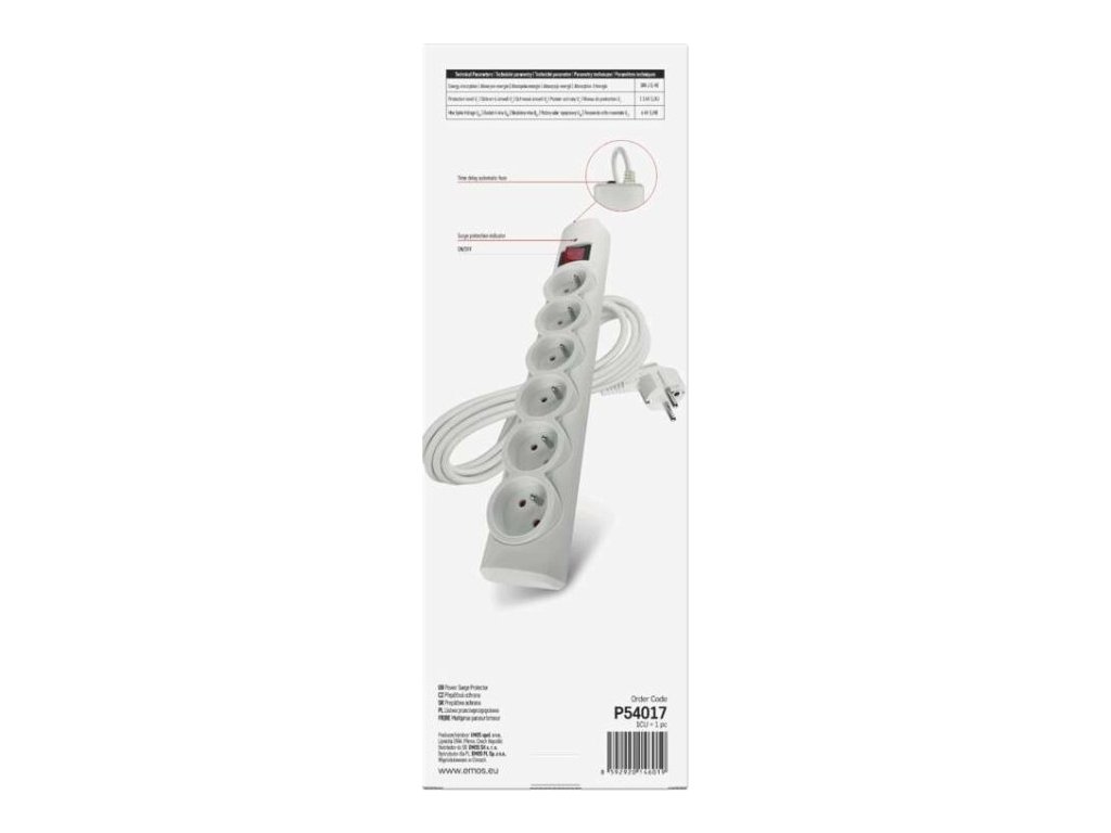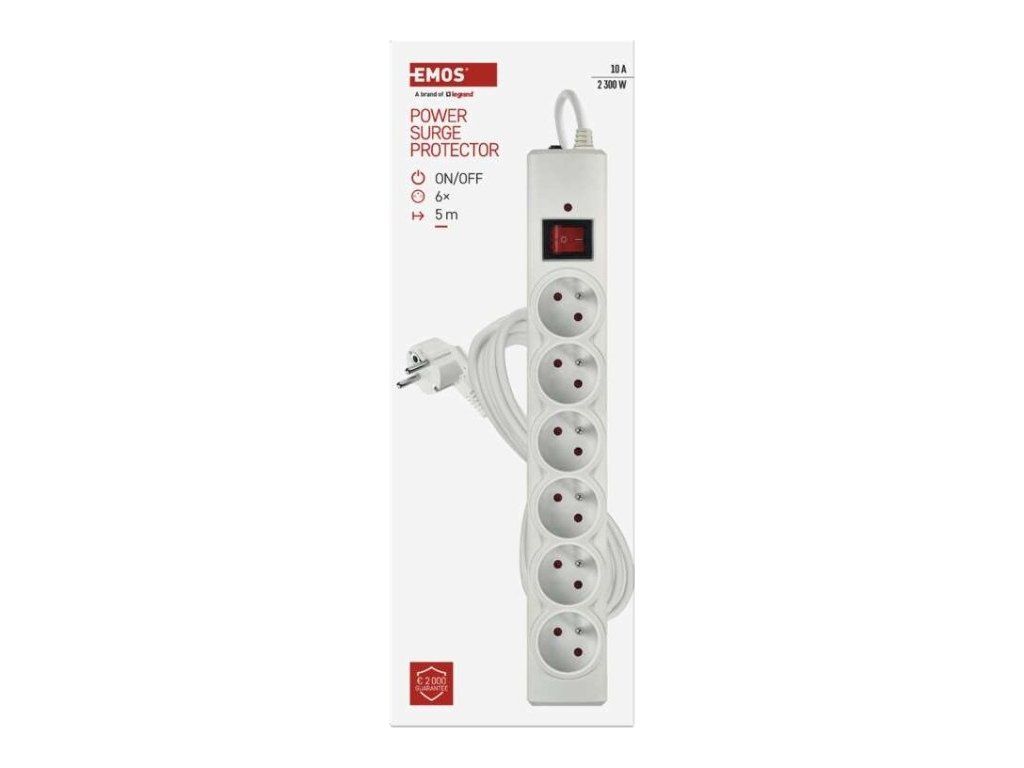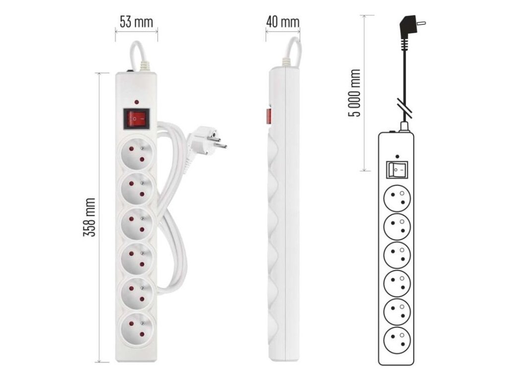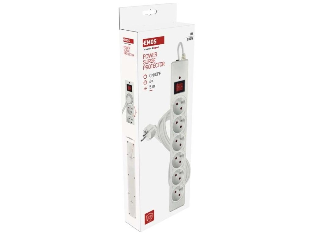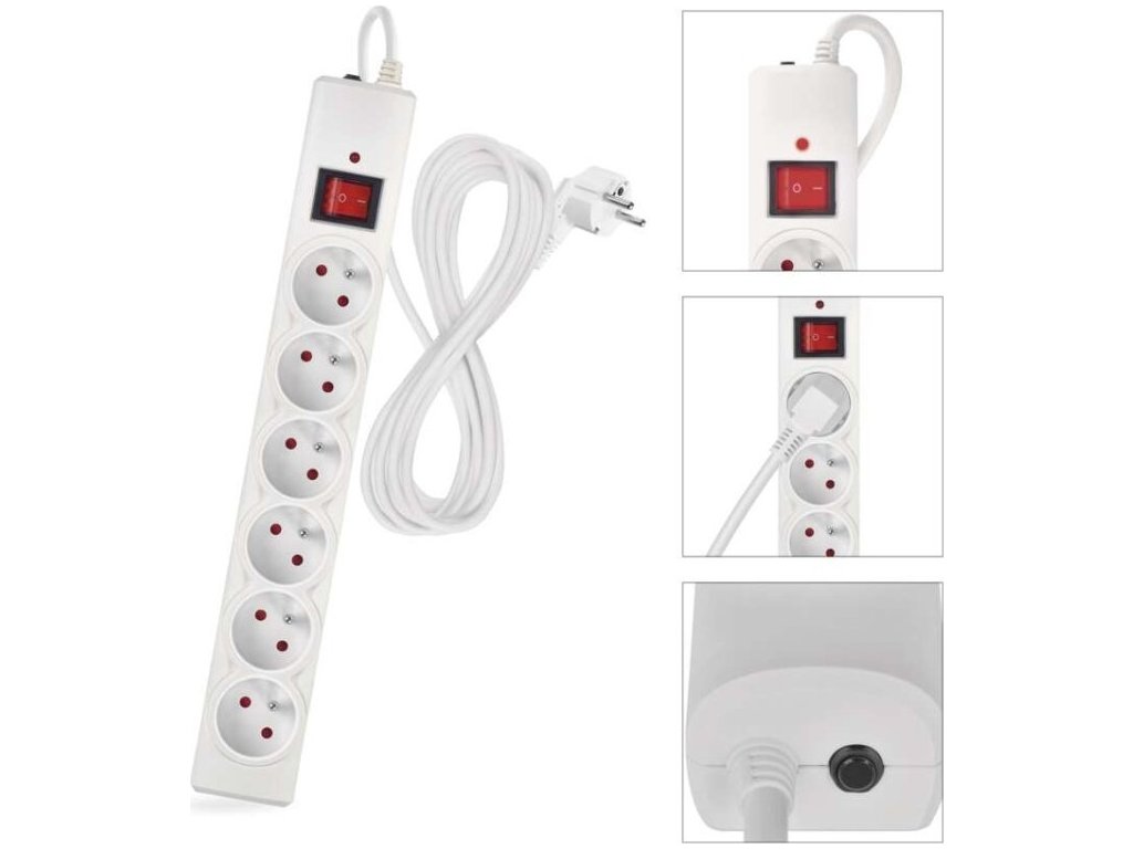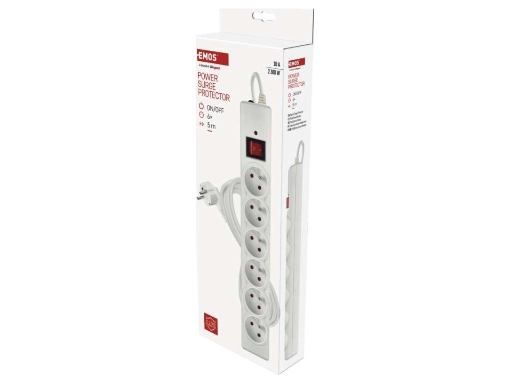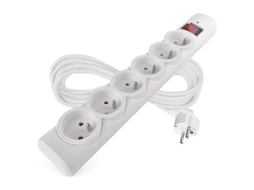 Přepěťová ochrana – 6 zásuvek, 5 m, bílá
