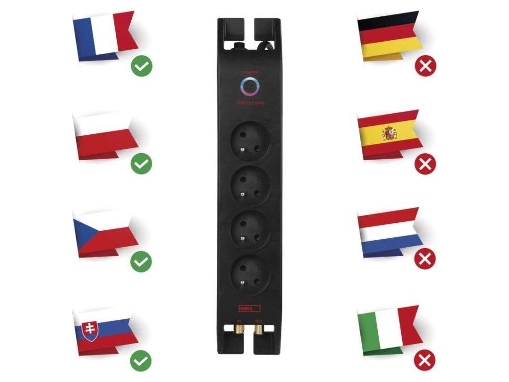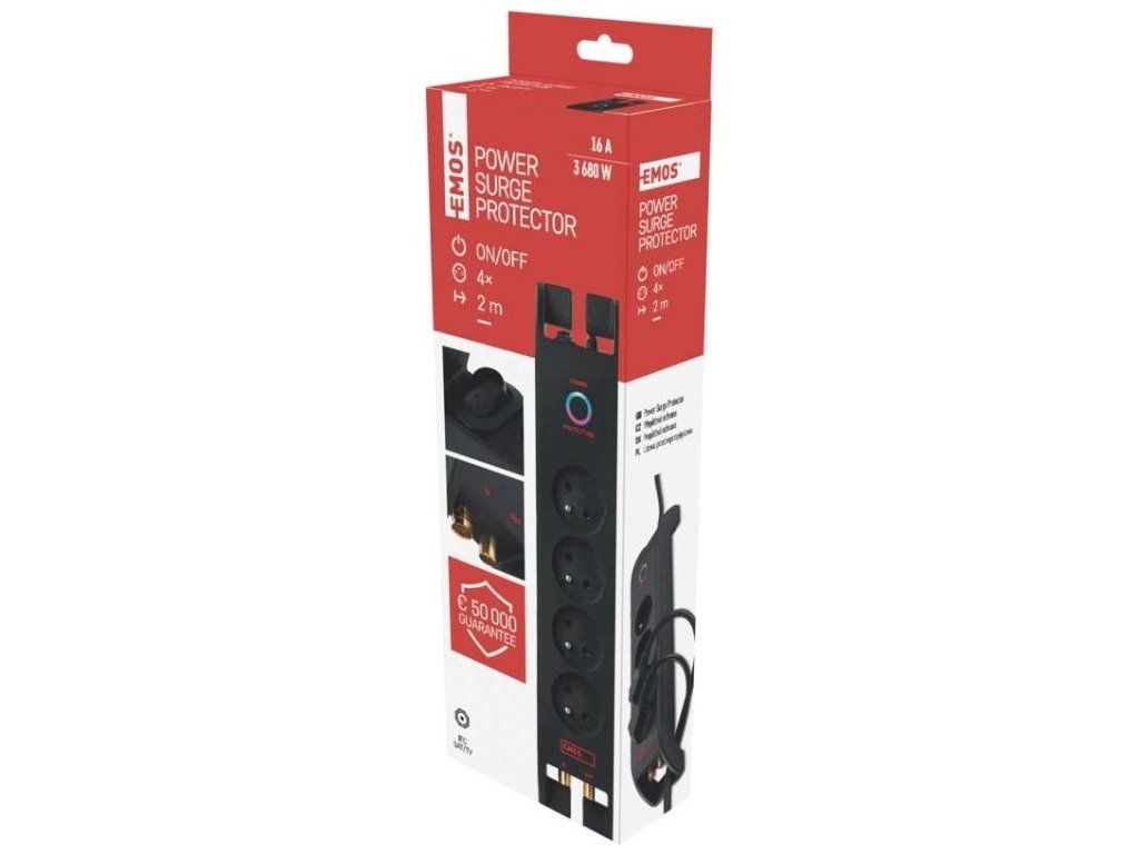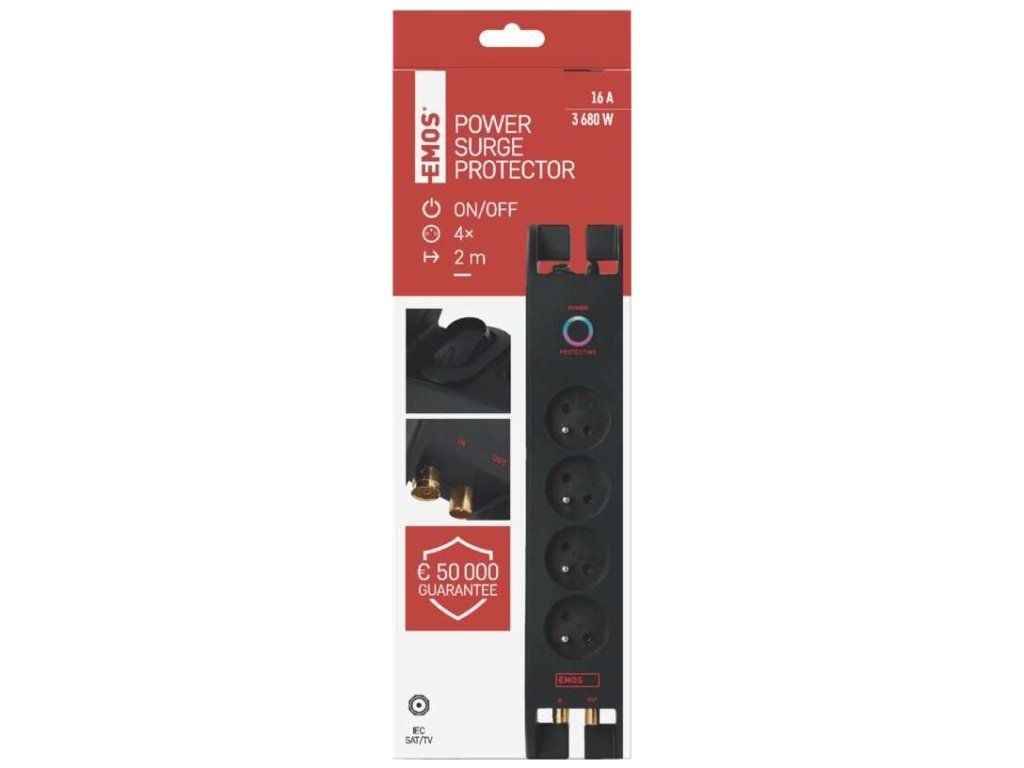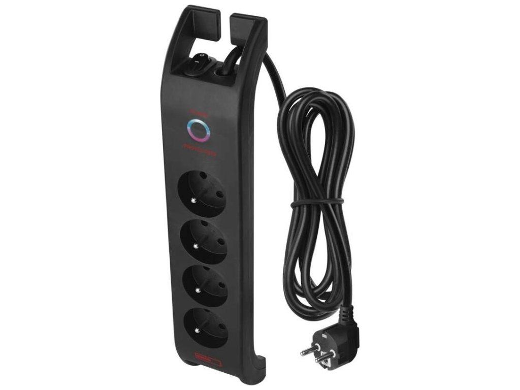 Přepěťová ochrana 1800J – 4 zásuvky, 2m, černá