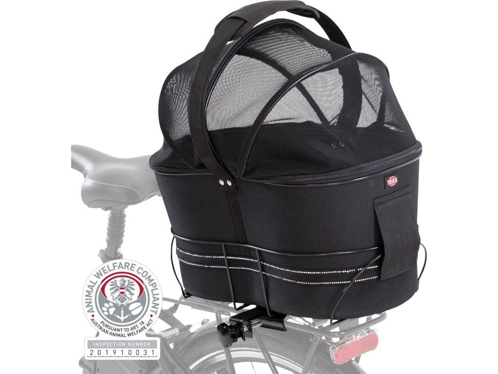 - pevný kovový rám pro bezpečný převoz zvířete na nosiči kola (šířka: 11,8–16 cm)