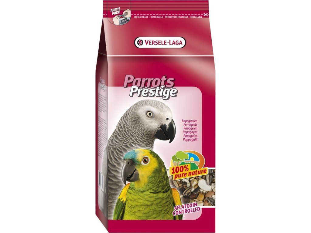 Prestige Parrots krmivo pro velké papoušky je 100% přírodní, kompletní krmivo pro velké papoušky. Prestige je pestrá a vyvážená směs se složením speciálně přizpůsobeným specifickým požadavkům na výživu vašeho velkého papouška. Obsahuje semena, obiloviny a ořechy.