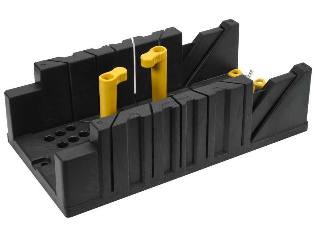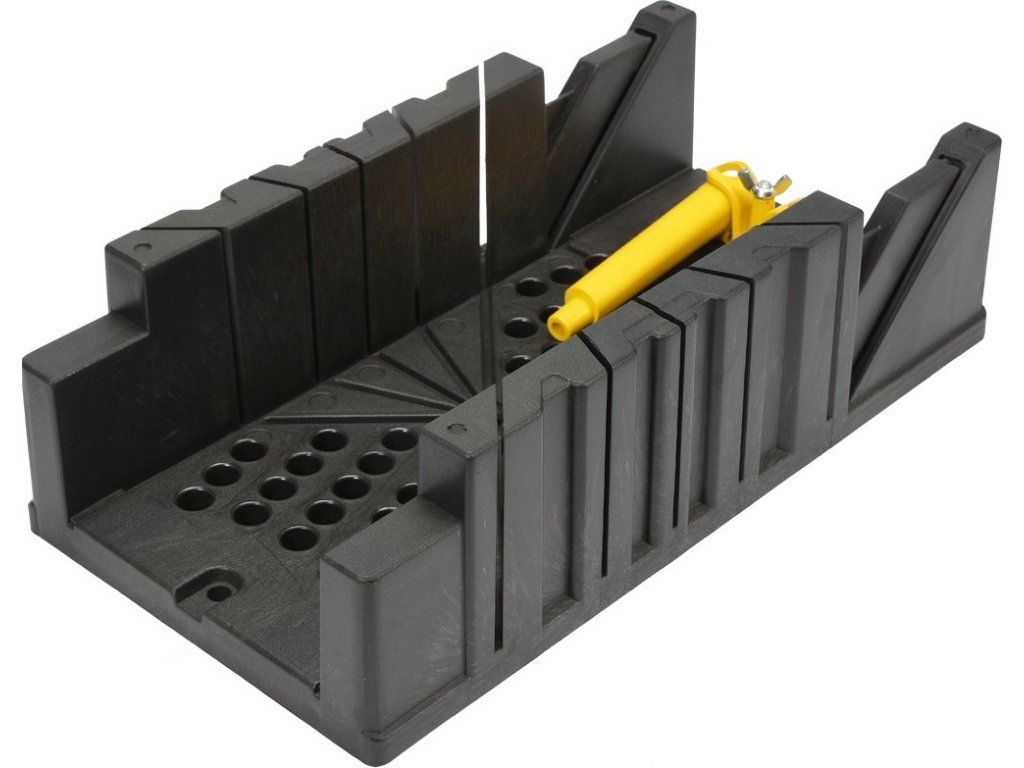 Plastový přípravek pro řezání přesných úhlů například při lištování dřevěných obkladů, podlah a všude tam, kde je potřeba uříznout přesný úhel. Tento kosořez umožňuje též upevnit řezaný materiál žlutými excentrickými kolíky, viz. obrázek.