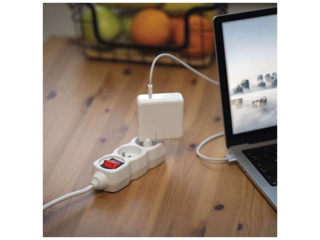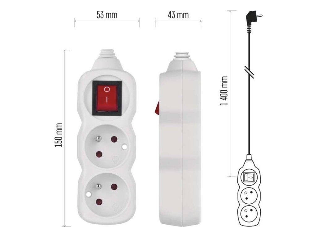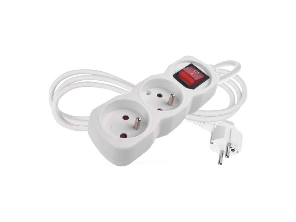 Bílý prodlužovací přívod, 2 zásuvky s dětskými clonkami, vypínačem, délkou 1,4 m. Průřezem vodiče 1 mm2. Vhodný pro maximální zátěž 16 A max.Při montáži na stěnu je nutné použít vrut se zápustnou hlavou PZ max. průměr 2,5–3 mm, délka 30–40 mm. V případě použití jiného průměru hrozí poškození plastové části otvoru. Pokud dojde k poškození plastové části otvoru, prodlužovací přívod nepoužívejte.