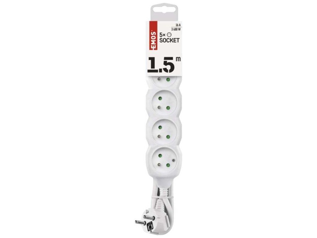 Prodlužovací kabel 1,5 m / 5 zásuvek / bílý / PVC / 1 mm2