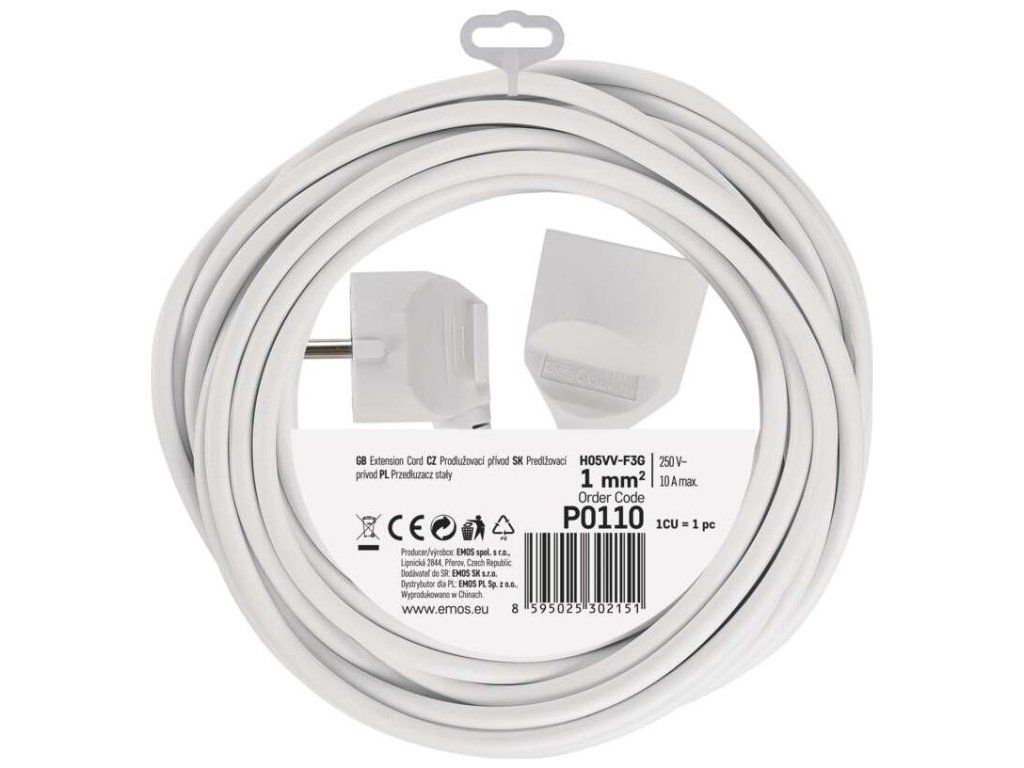 Prodlužovací přívod 10 m na 230 V~ slouží k prodloužení elektrické energie tam, kam pevná zásuvka nedosáhne.