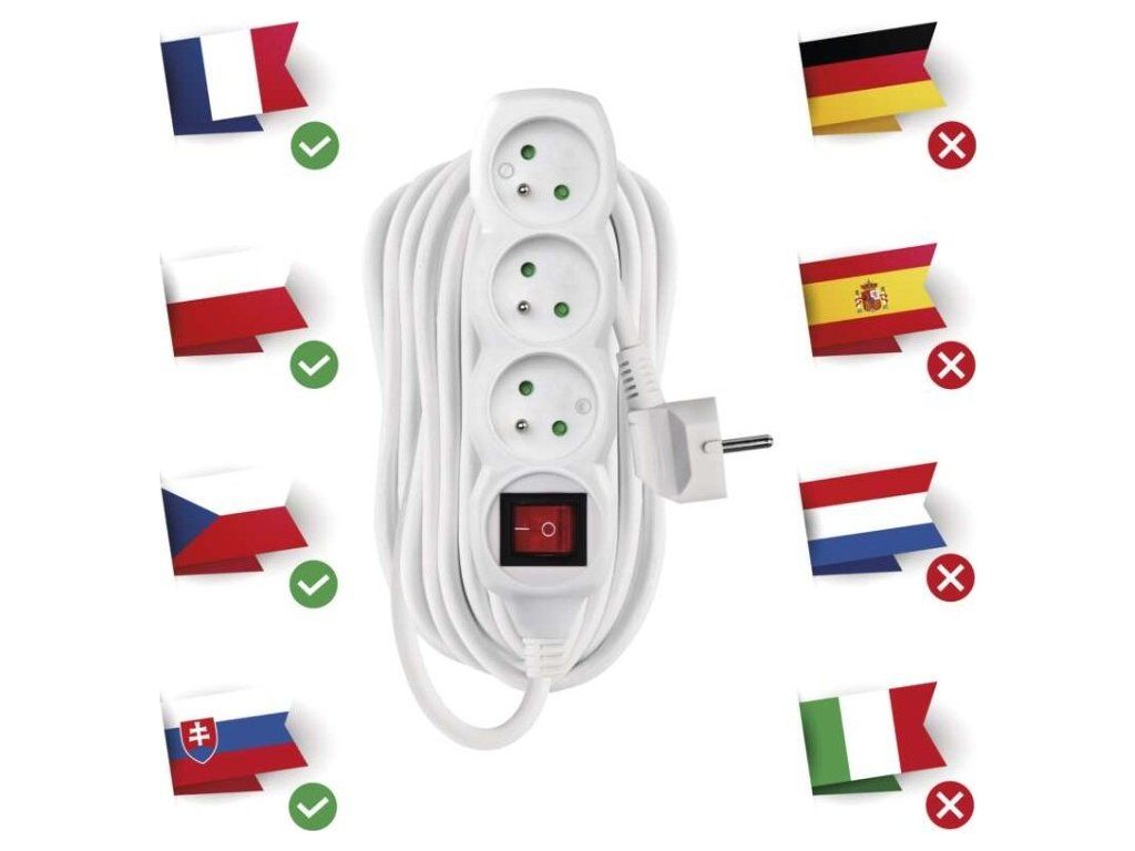 Prodlužovací kabel 10 m / 3 zásuvky / s vypínačem / bílý / PVC / 1 mm2