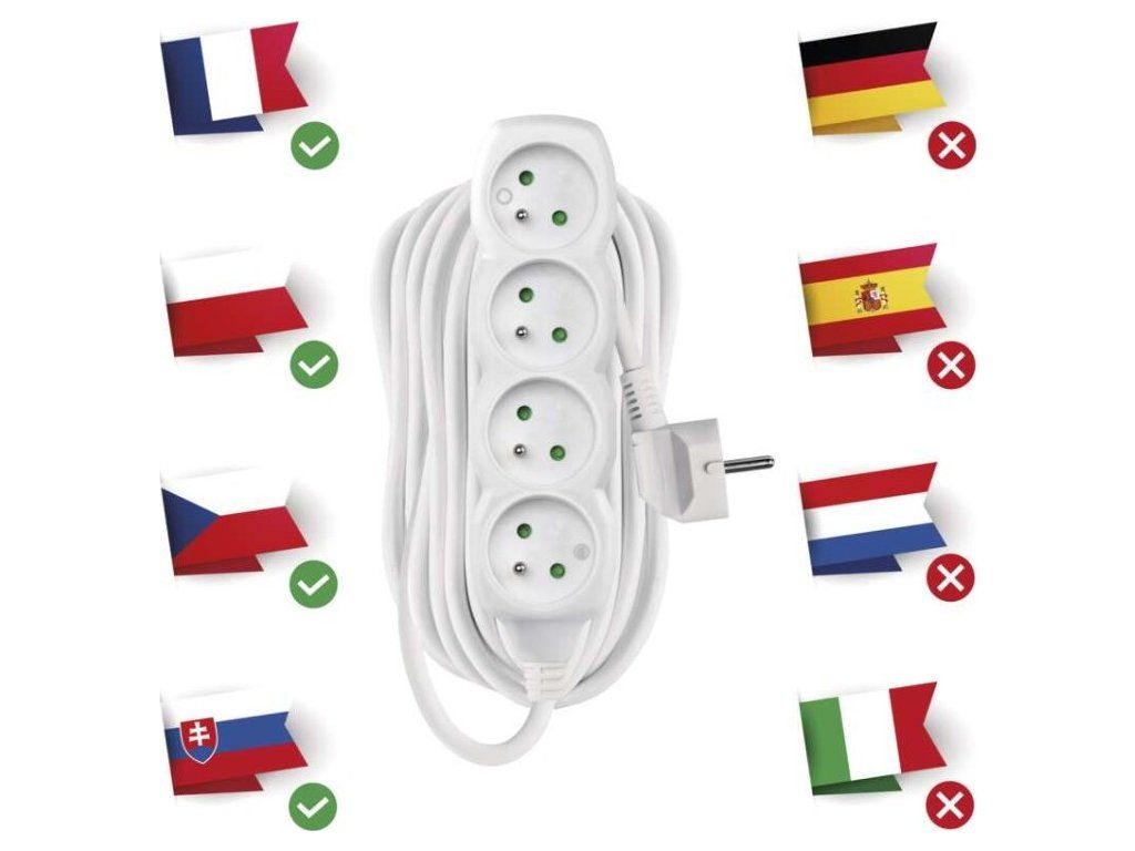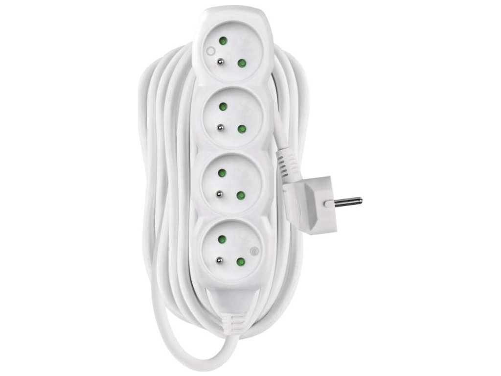 Prodlužovací kabel 10 m / 4 zásuvky / bílý / PVC / 1,5 mm2