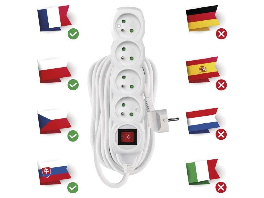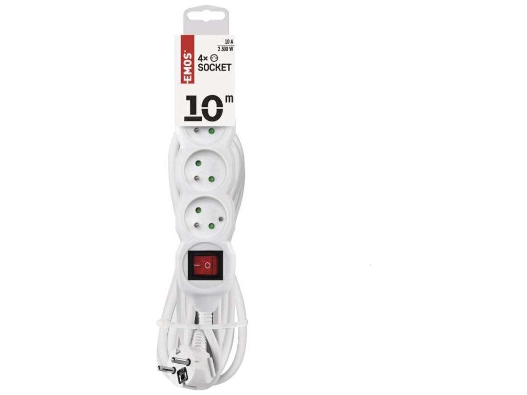Prodlužovací kabel 10 m / 4 zásuvky / s vypínačem / bílý / PVC / 1 mm2