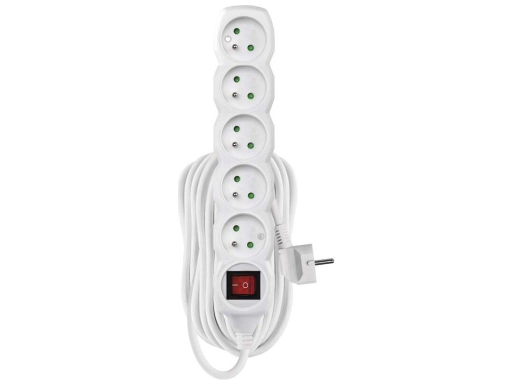 Prodlužovací kabel 10 m / 5 zásuvek / s vypínačem / bílý / PVC / 1,5 mm2