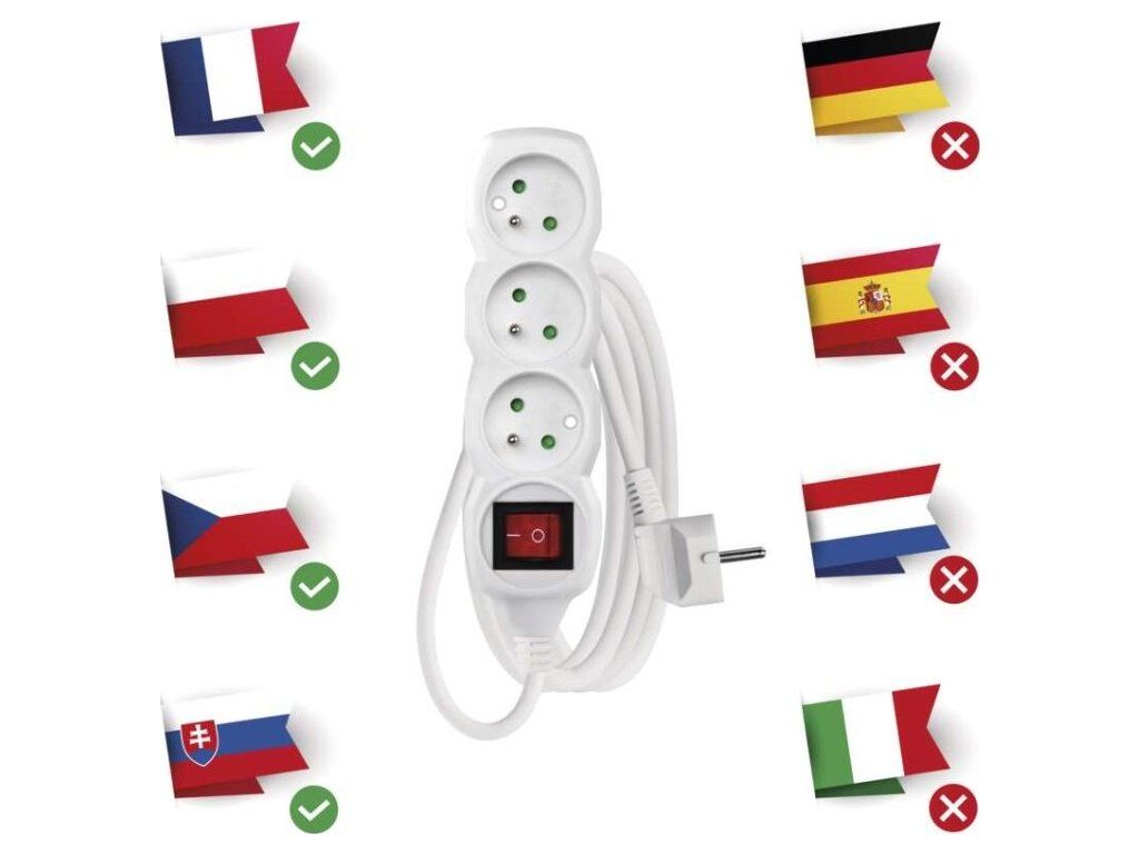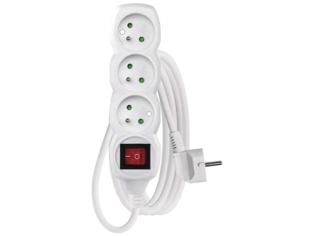 Prodlužovací kabel 3 m / 3 zásuvky / s vypínačem / bílý / PVC / 1,5 mm2
