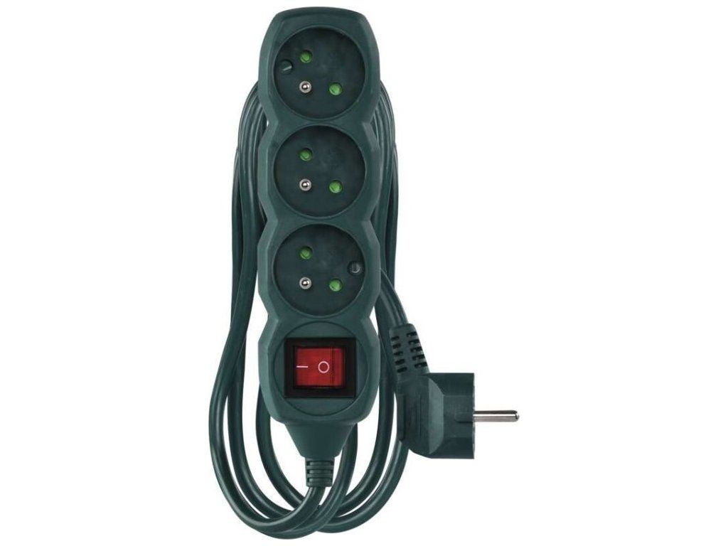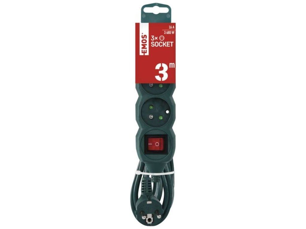 Prodlužovací kabel 3 m / 3 zásuvky / s vypínačem / zelený / PVC / 1,5 mm2