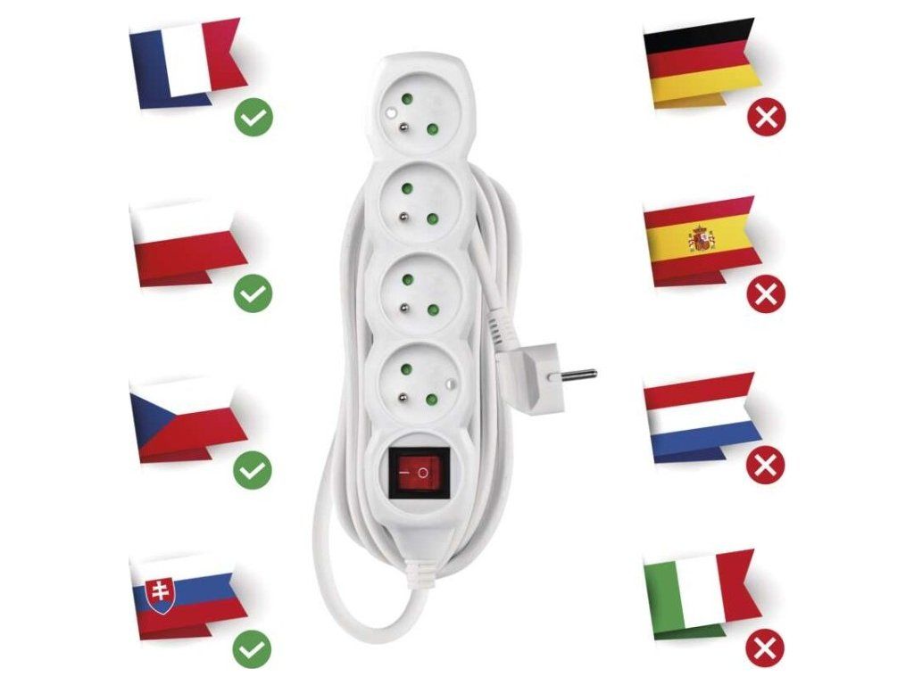Prodlužovací kabel 3 m / 4 zásuvky / s vypínačem / bílý / PVC / 1,5 mm2