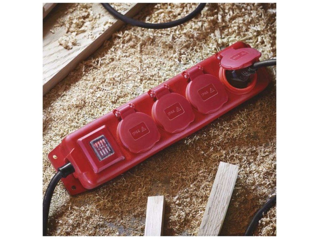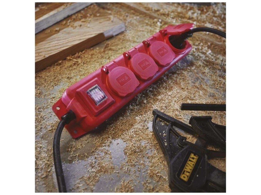 Neoprenový kabel - je určen pro použití na staveništích a pro trvalé použití ve venkovních prostorách,oleji odolný. Krytí IP44 - vhodné pro venkovní použití. Podsvícený 2pólový vypínač s krytkou. Možnost uchycení na zeď pomocí montážních otvorů, které jsou umístěny na těle zásuvkové lišty.