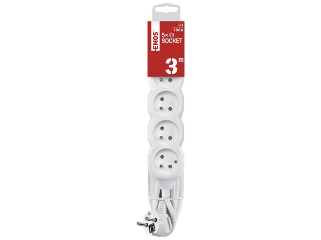 Prodlužovací přívod 3 m na 230 V~ slouží k prodloužení elektrické energie tam, kam pevná zásuvka nedosáhne.Při montáži na stěnu je nutné použít vrut se zápustnou hlavou PZ max. průměr 2,5–3 mm, délka 30–40 mm. V případě použití jiného průměru hrozí poškození plastové části otvoru. Pokud dojde k poškození plastové části otvoru, prodlužovací přívod nepoužívejte.